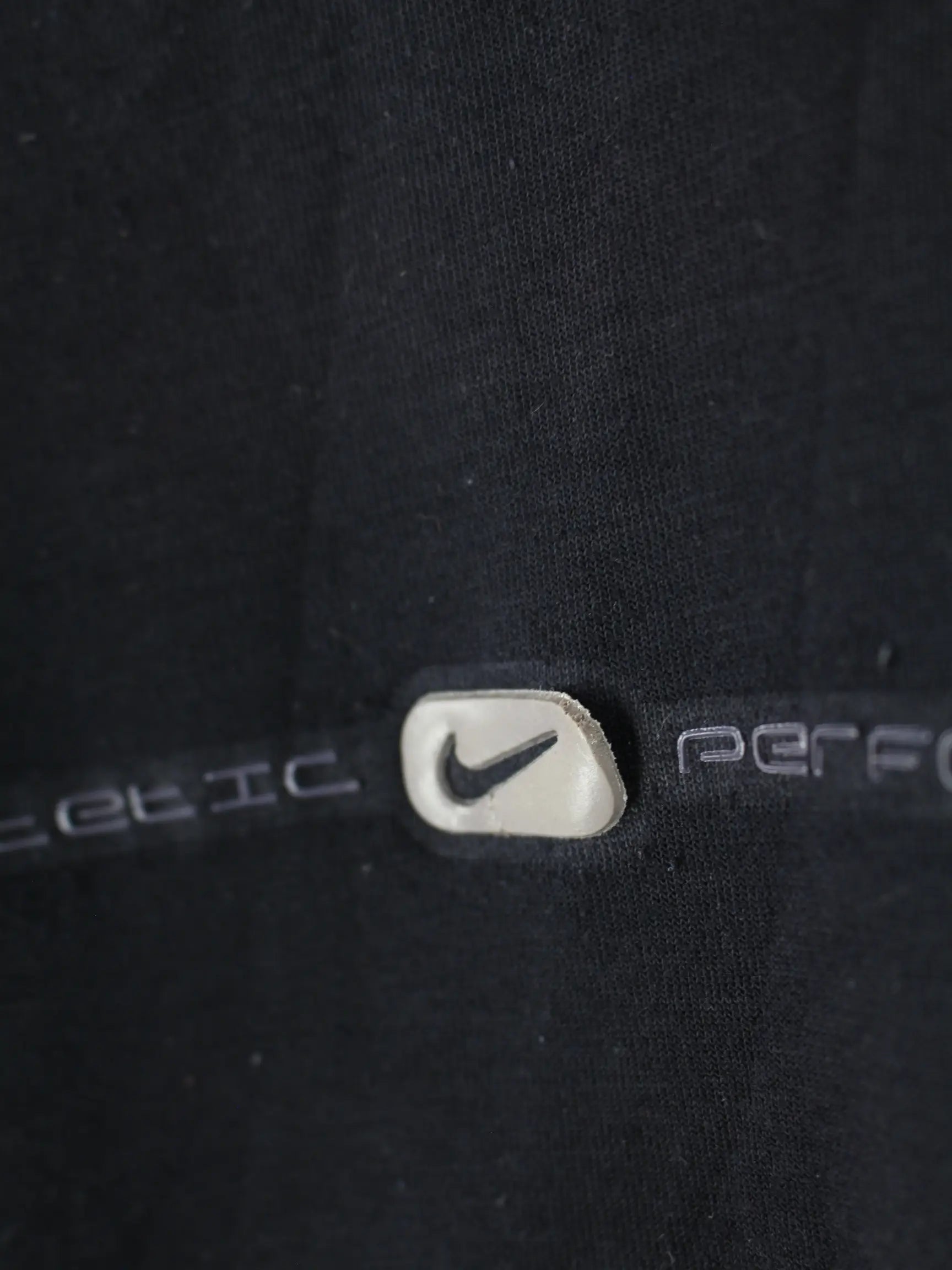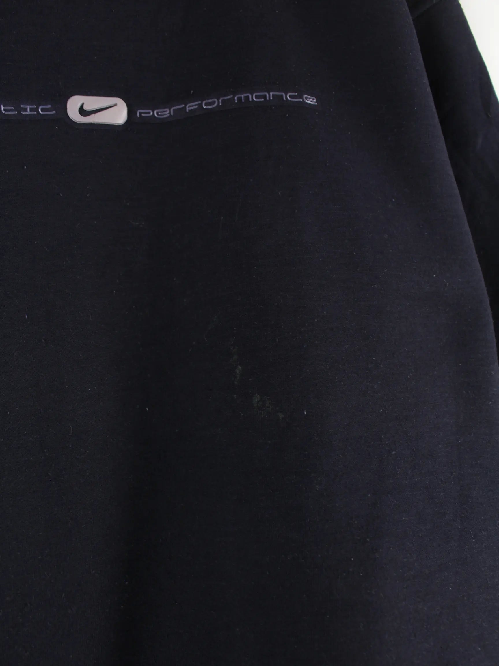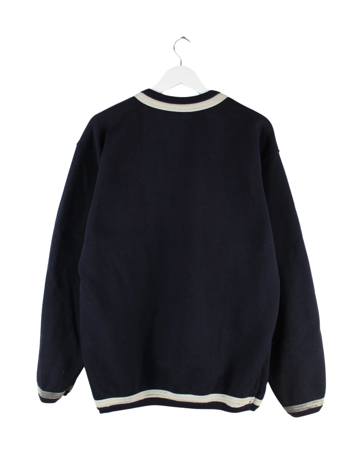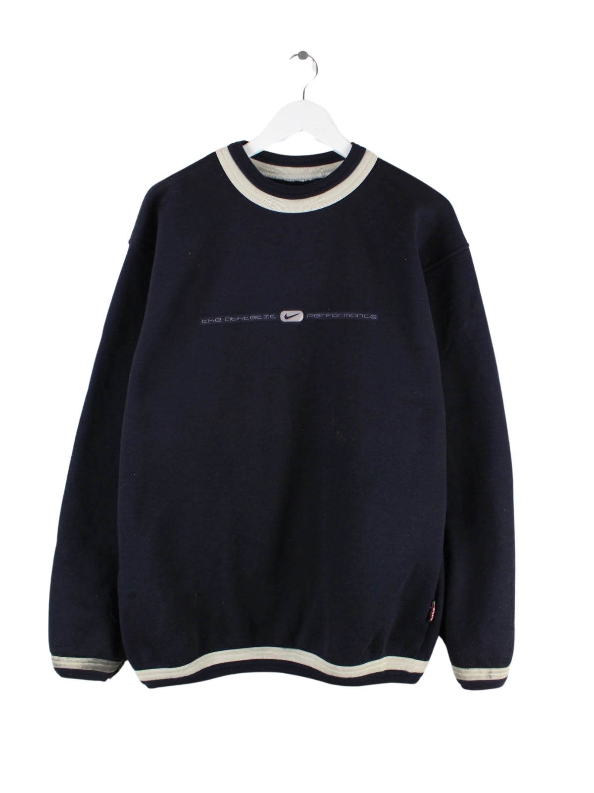 Schwarzer Sweater der Marke Nike in Größe L. Er ist aus einer Baumwollmischung hergestellt. Den Zustand würden wir als 'In Ordnung' bezeichnen (vergl. Bilder).Mit seltenem Athletic Print.