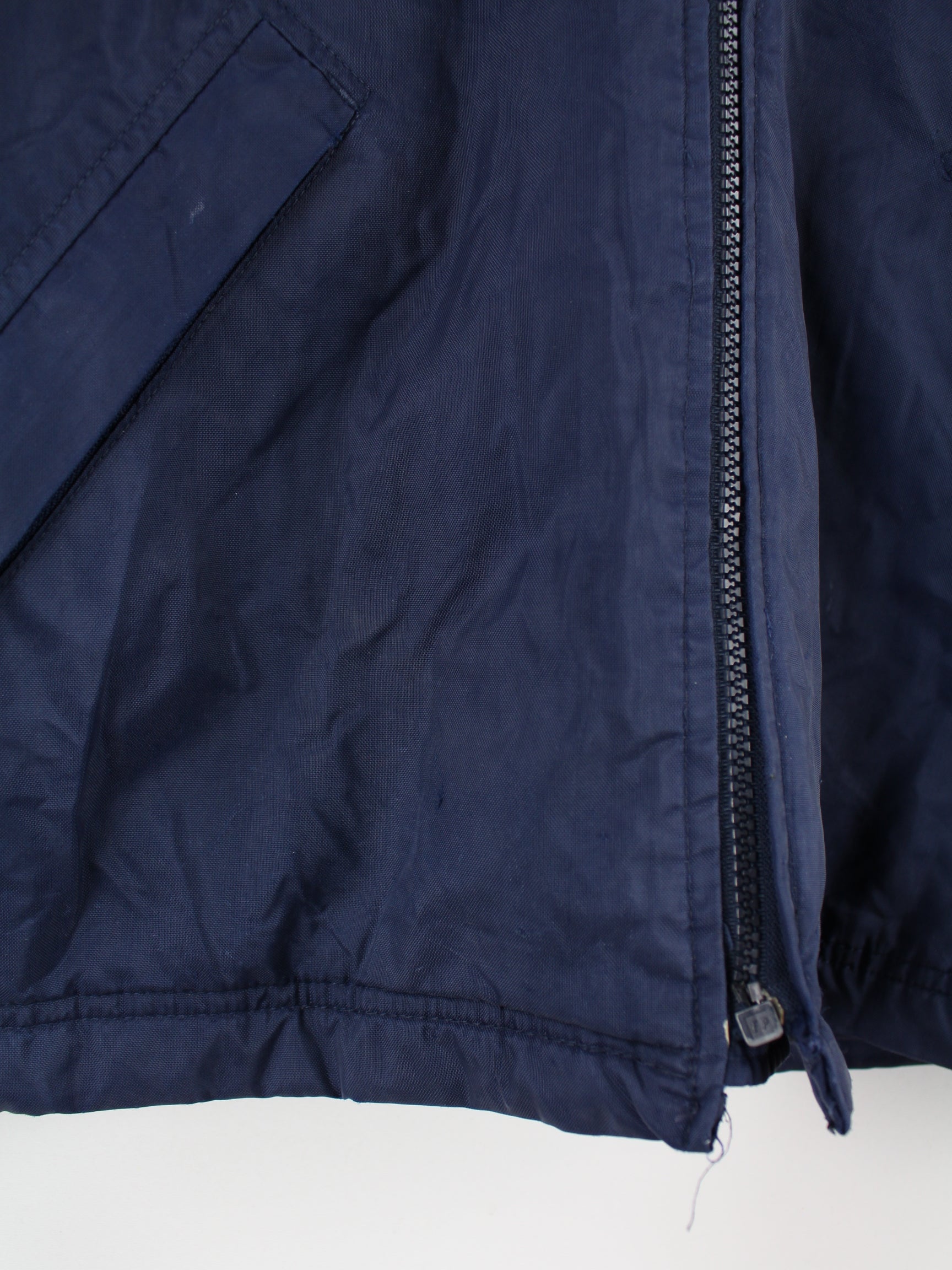 Blaue Jacke vom Label Nike in Größe M. Sie ist aus Synthetik gefertigt und in gutem Zustand lieferbar.