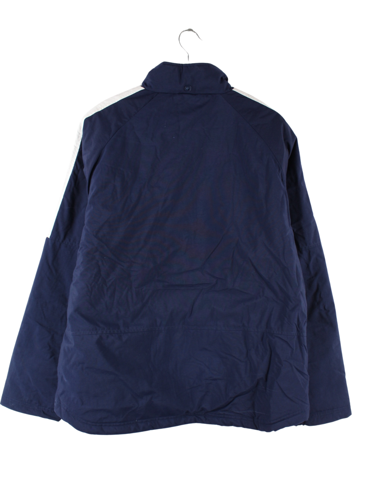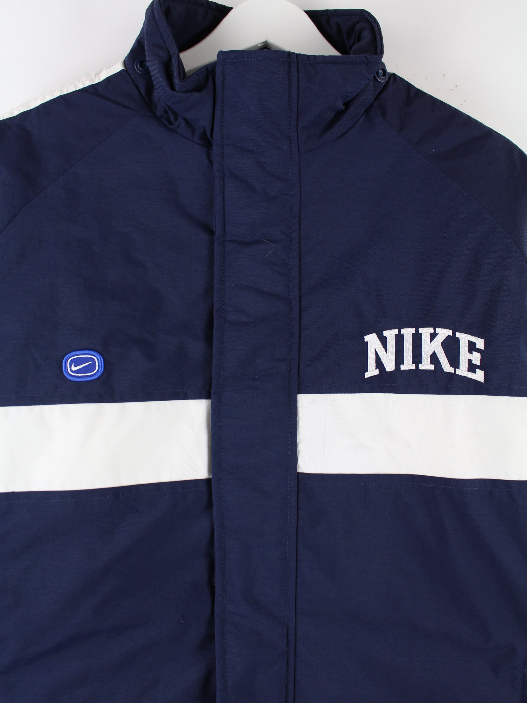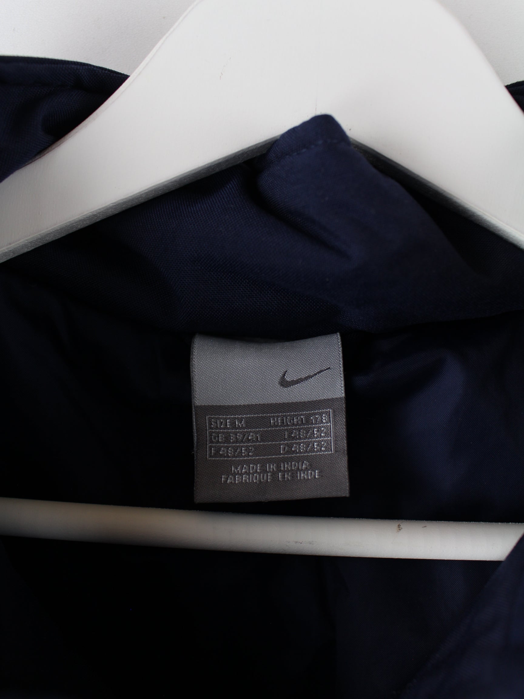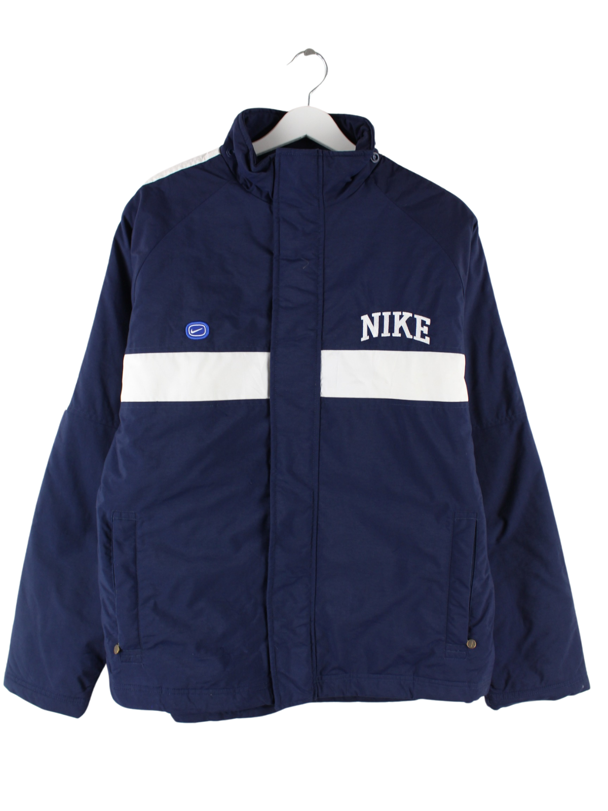 Jacke vom Brand Nike mit Stickereien in Größe M. Sie ist aus Synthetik gefertigt und in Blau bei uns vorrätig.