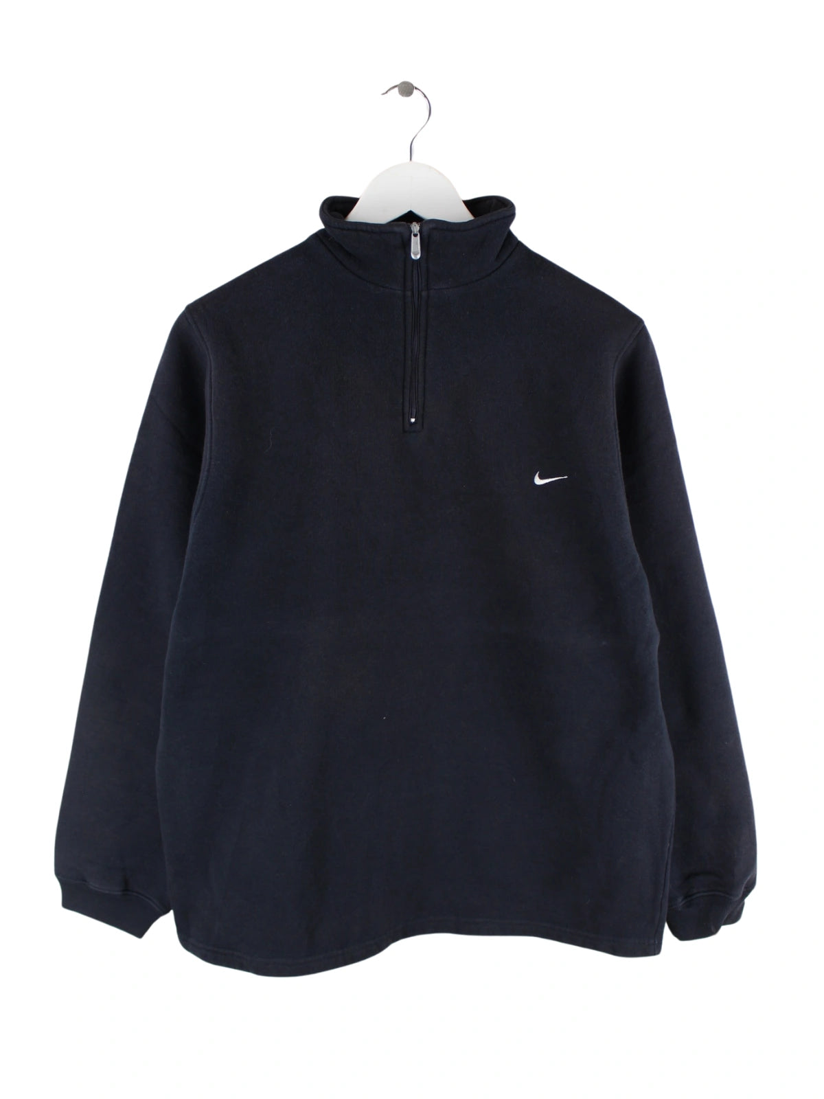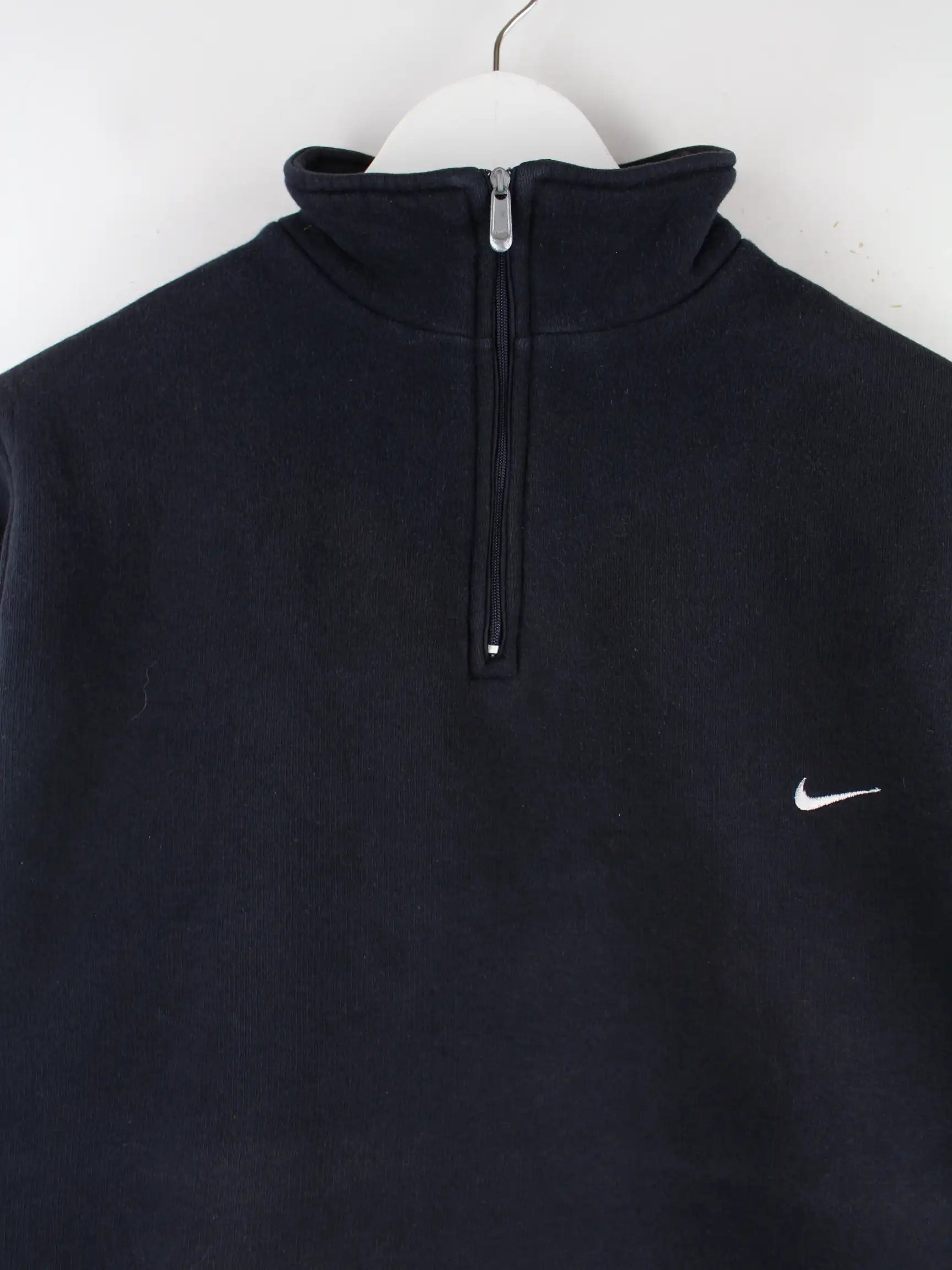 Sweater vom Brand Nike mit kurzem Reißverschluß in Größe S. Er ist aus einer Baumwollmischung gemacht und in Schwarz bei uns vorrätig.