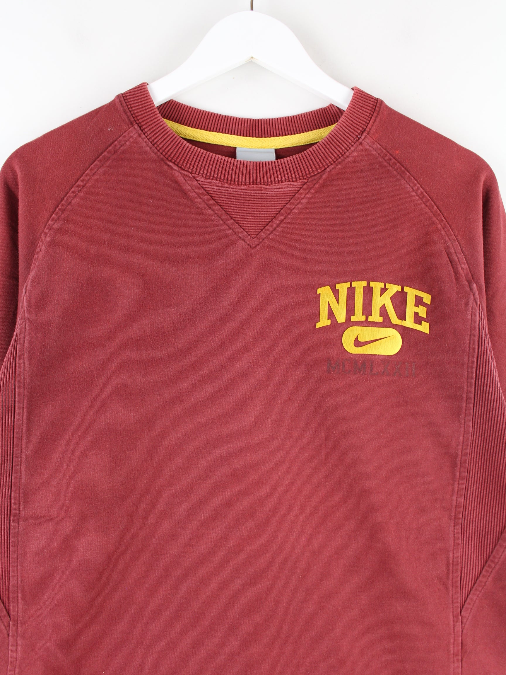 Sweater from the Nike label in size M. It is made from a cotton blend and comes in red. With a chic logo print.