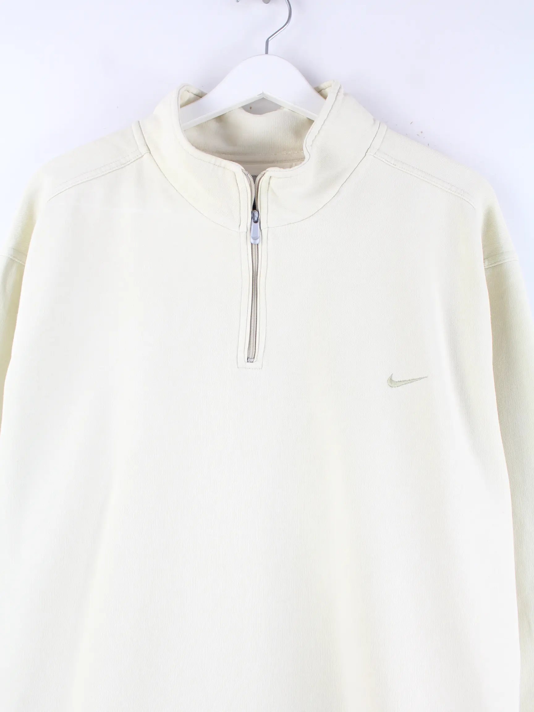 Sweater von Nike mit half Zip in Größe L. Er ist aus einer Baumwollmischung gemacht und in Beige bei uns zu bekommen.