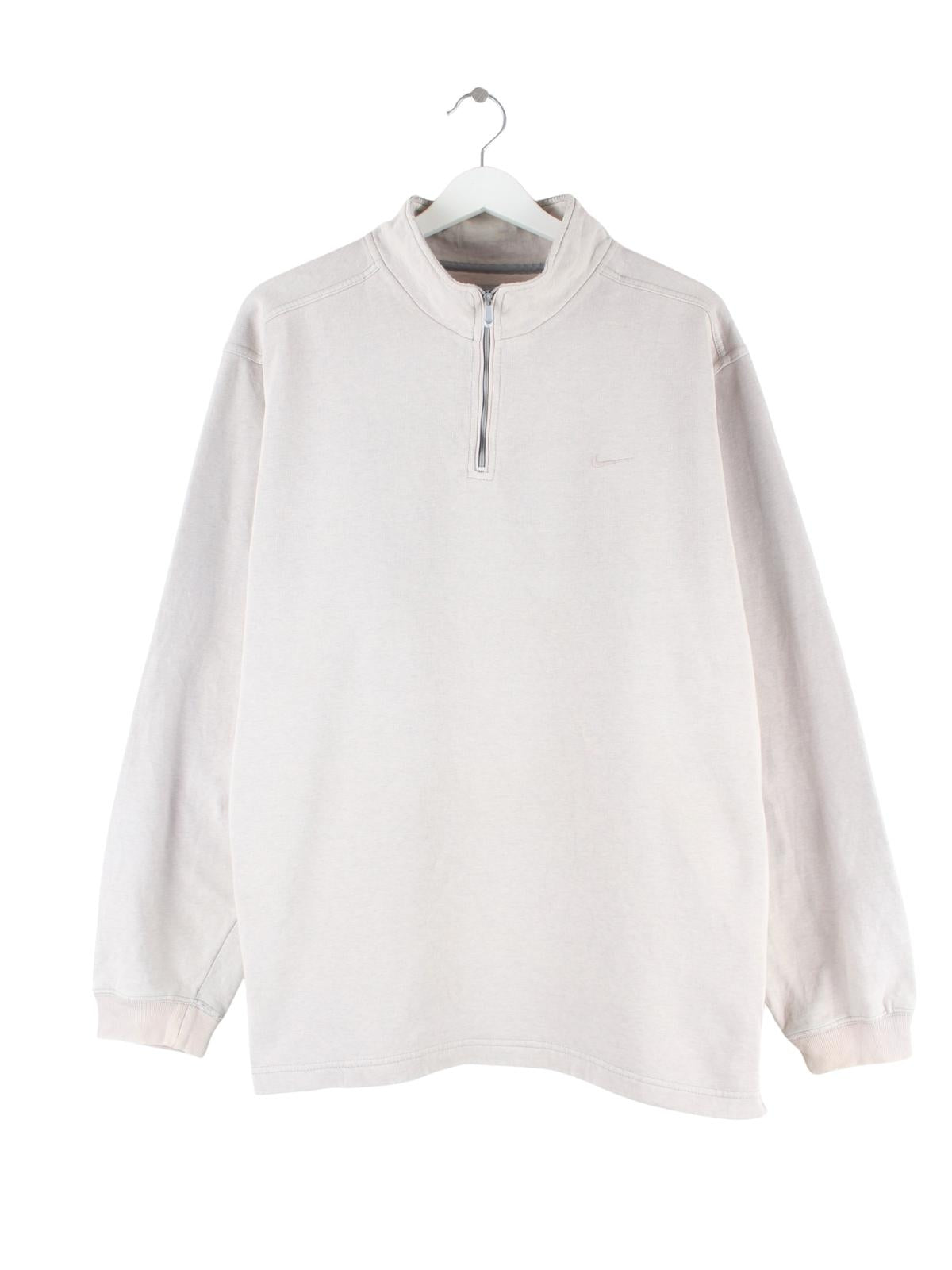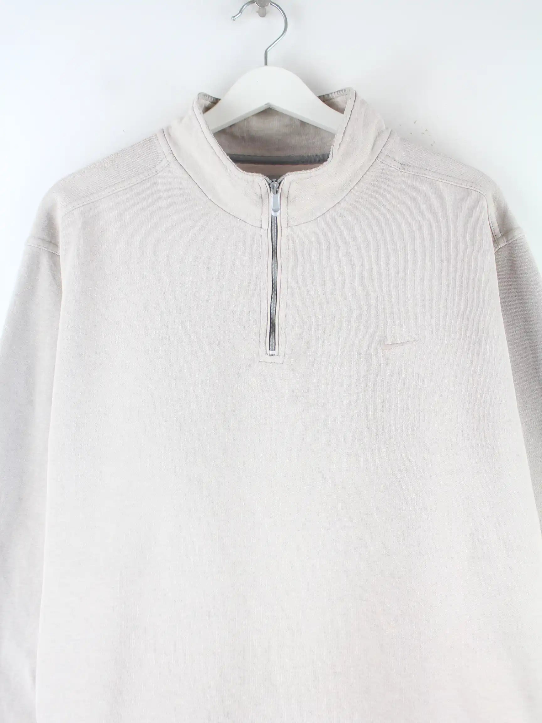 Sweater aus dem Hause Nike mit half Zip in Größe M. Er ist aus einer Baumwollmischung produziert und in Beige auf Lager.