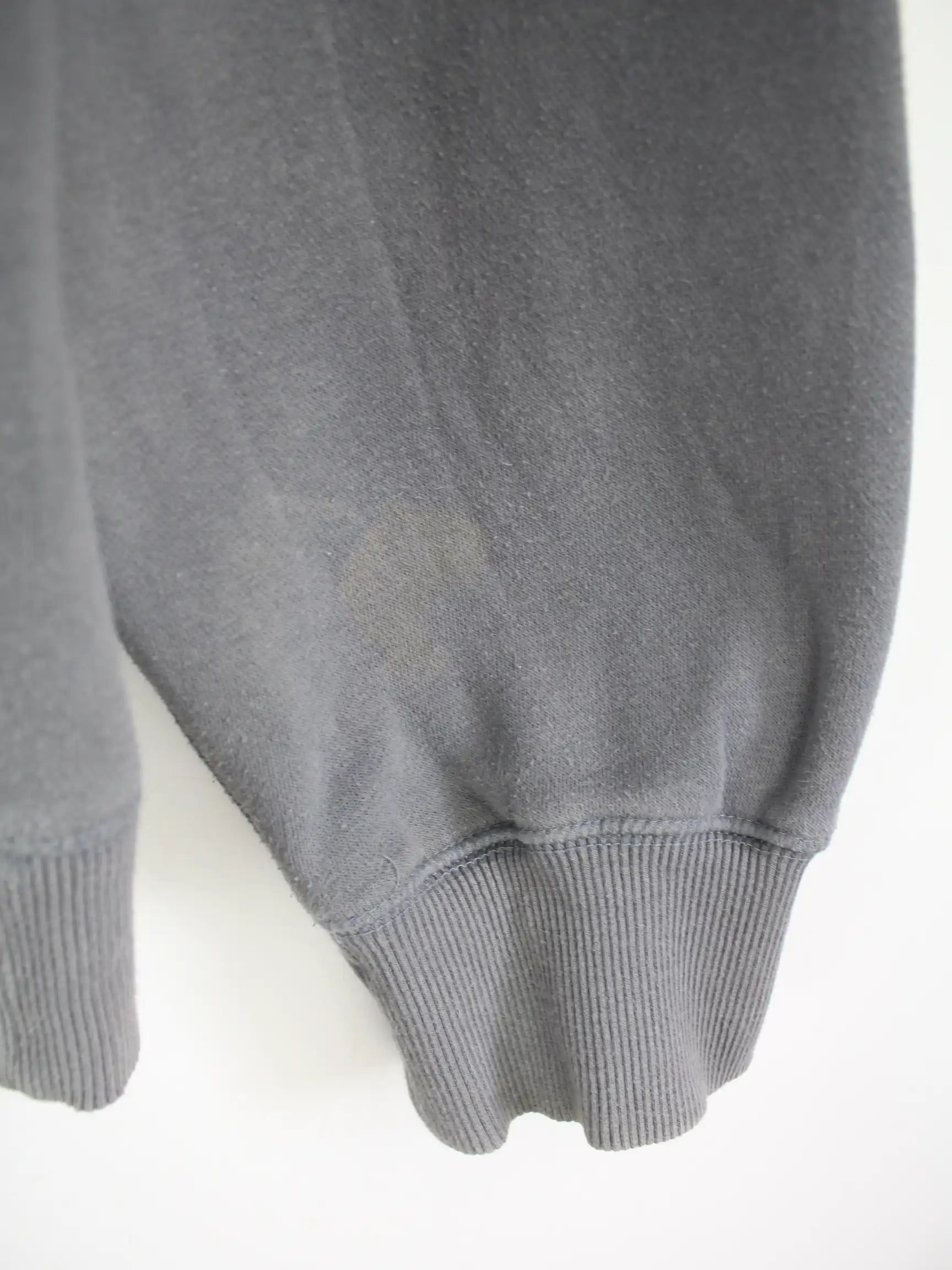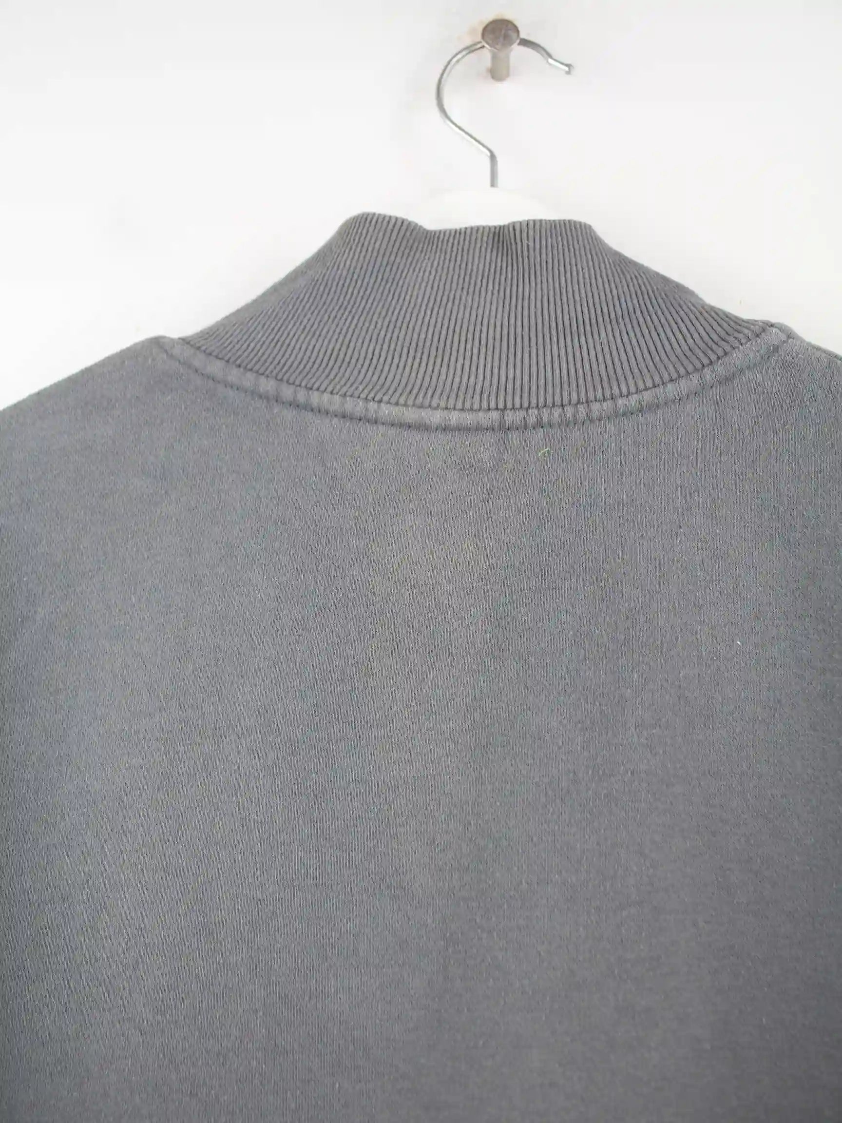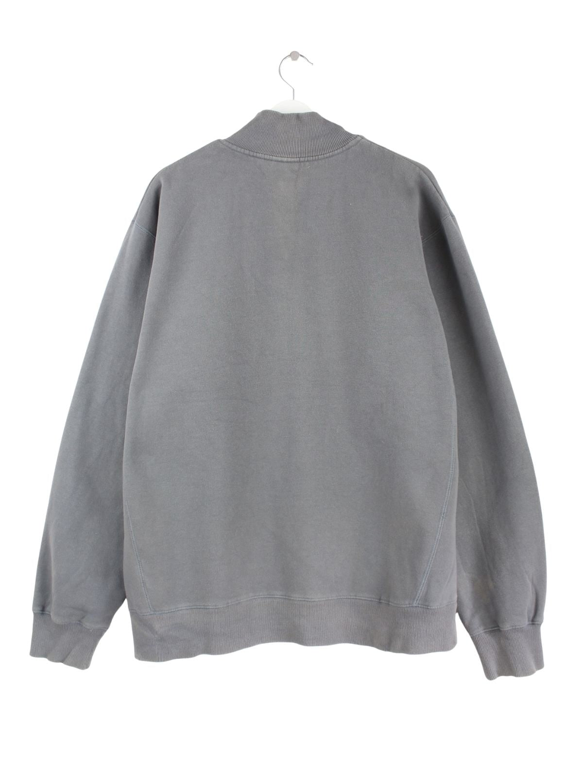 Sweater vom Brand Nike mit halbem Reißverschluß in Größe XL. Er ist aus einer Baumwollmischung hergestellt und in Grau lieferbar.