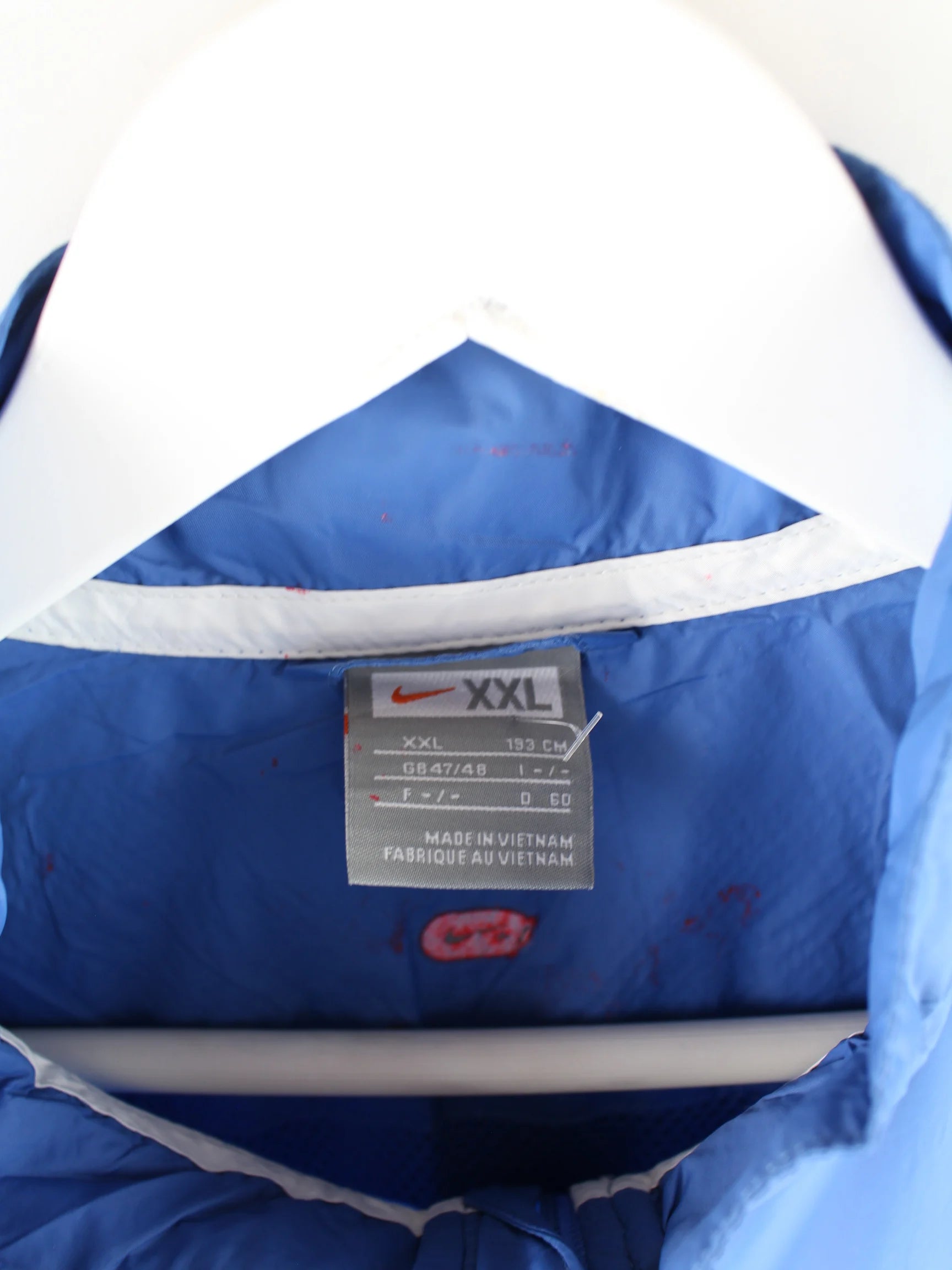 Leichte Jacke aus dem Hause Nike in Größe XXL. Sie ist aus Synthetik gefertigt und in Blau in Stock.