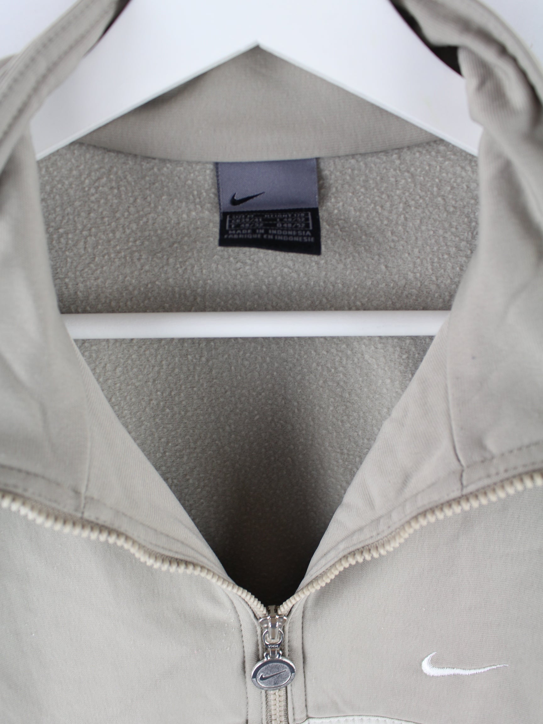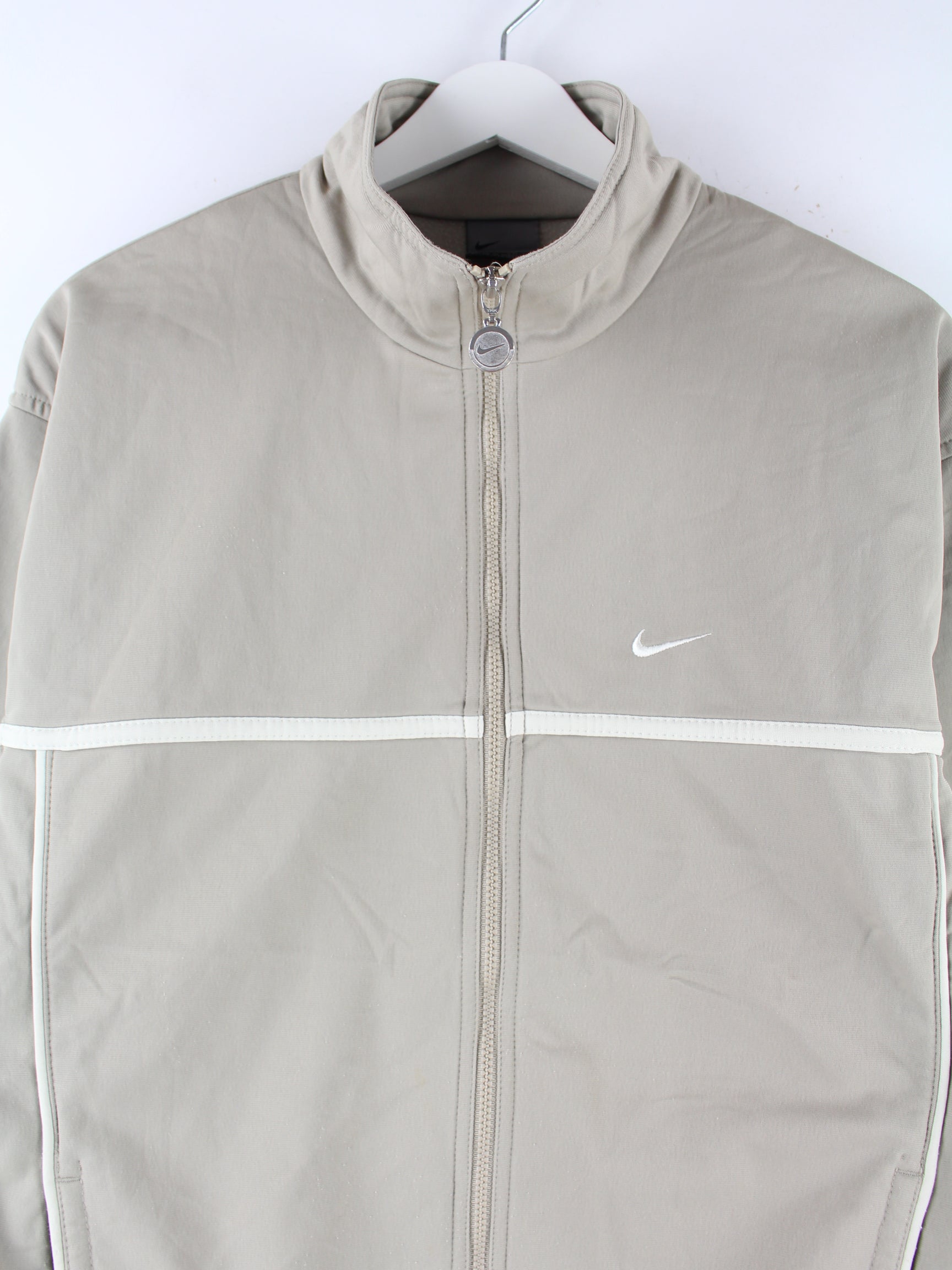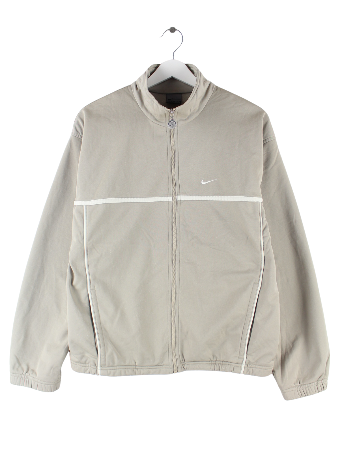 Beigefarbene Trainingsjacke vom Brand Nike in Größe M. Sie ist aus Synthetik gemacht und in gutem Zustand vorrätig.