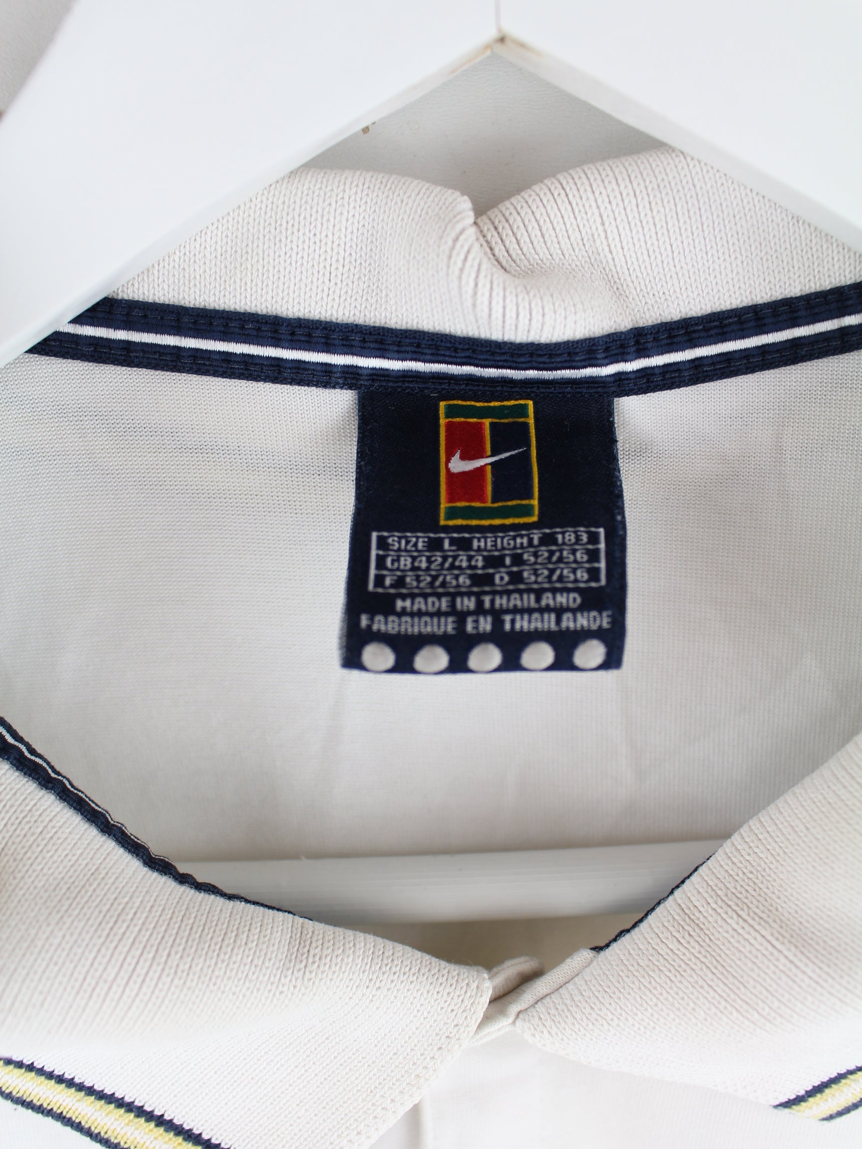Polo shirt from the Nike label in size L from the 90's. It is made of cotton and is available in white.
