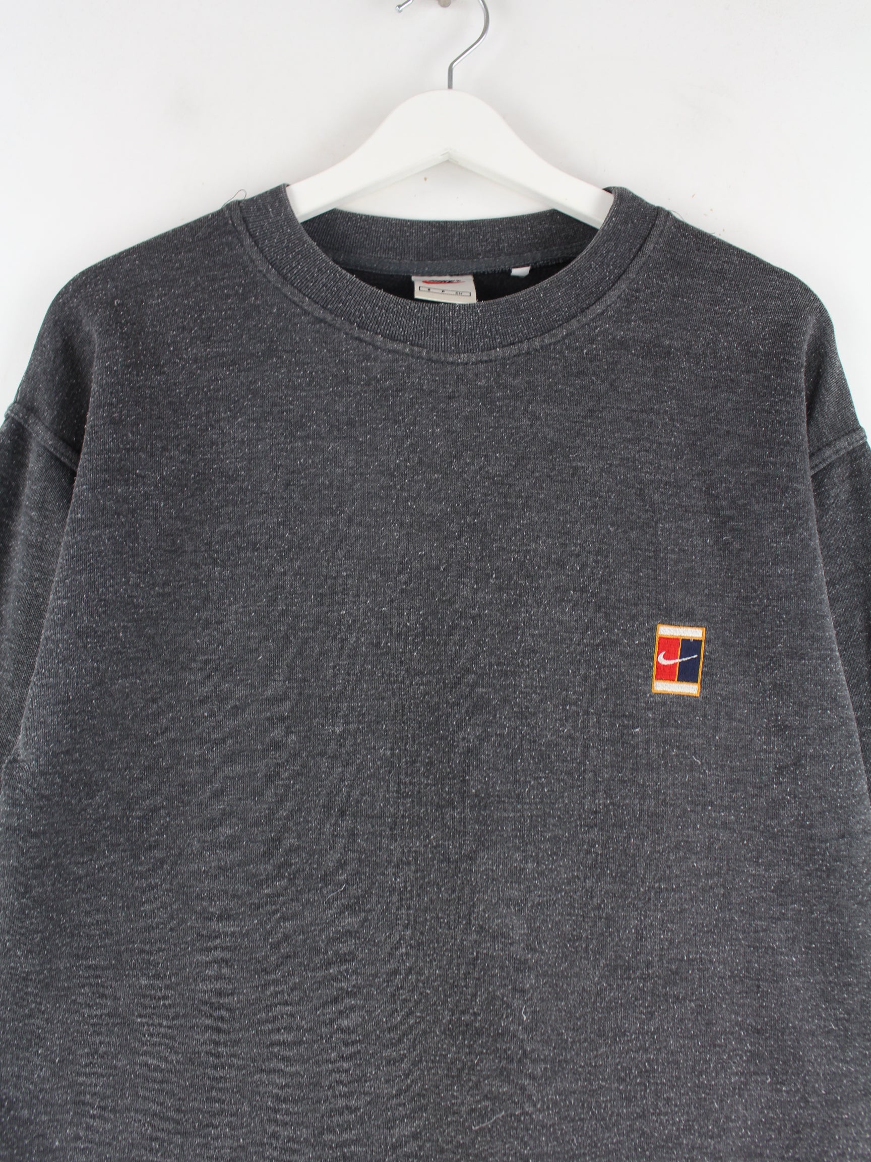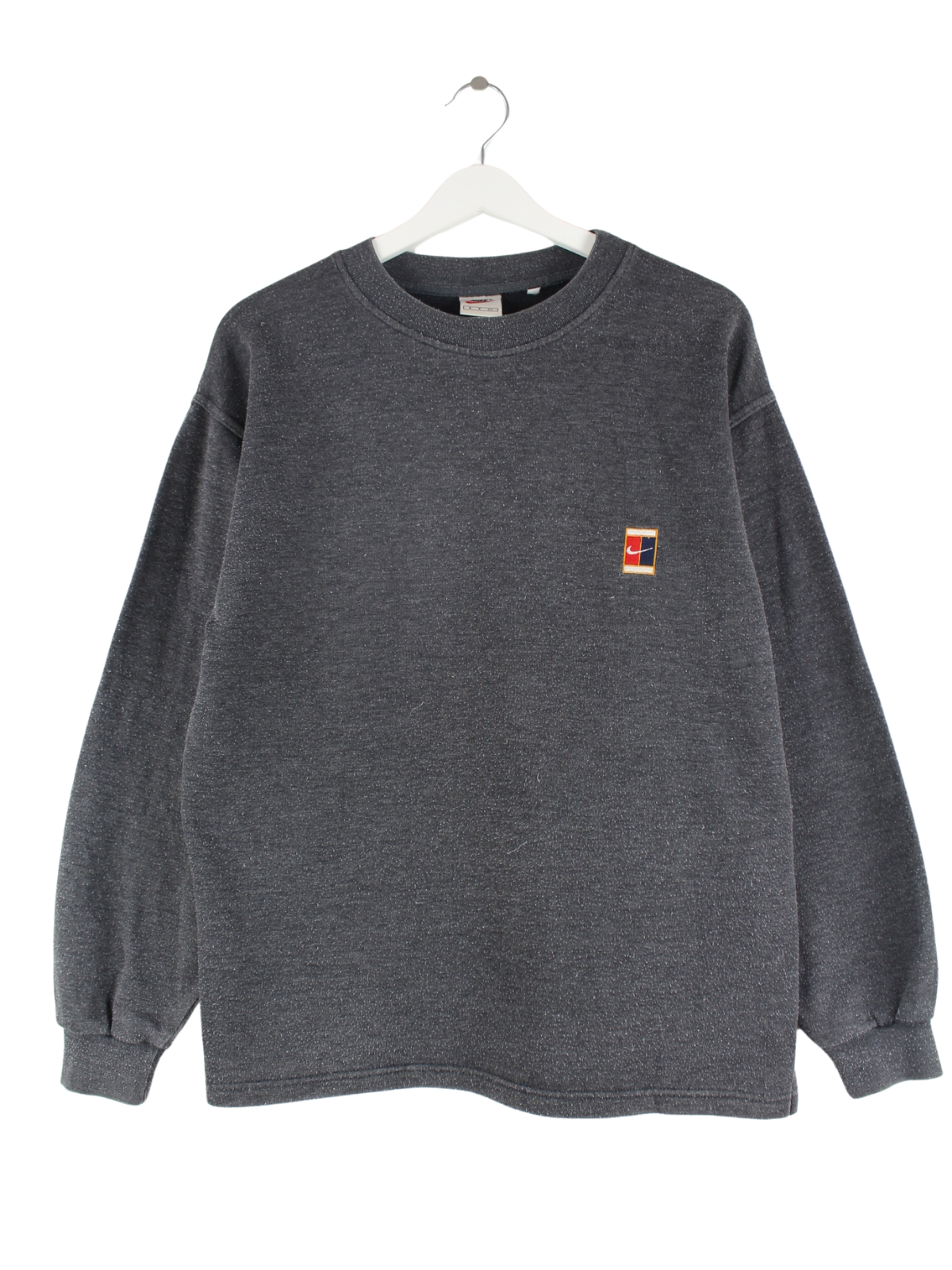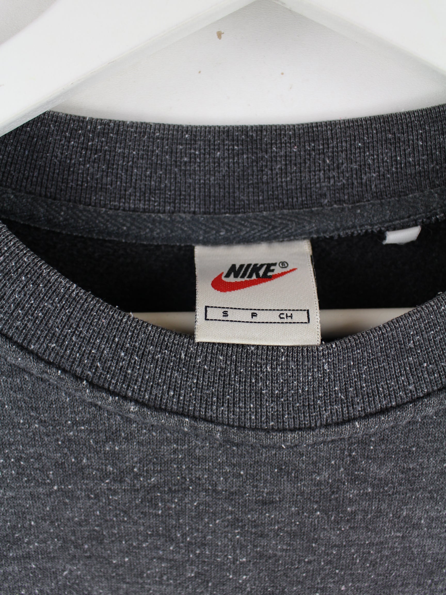Grauer Sweater der Brand Nike aus den 90'ern in Größe S. Er ist aus einer Baumwollmischung gemacht und in sehr gutem Zustand bei uns vorrätig.
