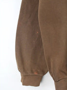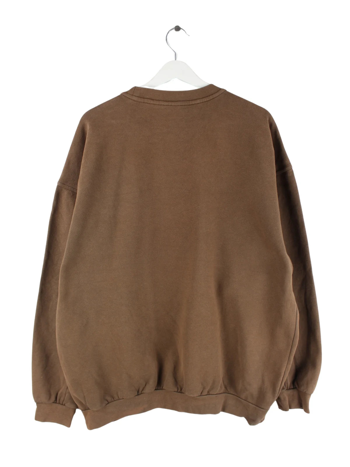 Brauner Sweater mit Stickereien des Labels Nike aus den 90'ern in Größe XL. Er ist aus einer Baumwollmischung angefertigt und in gutem Zustand vorrätig.