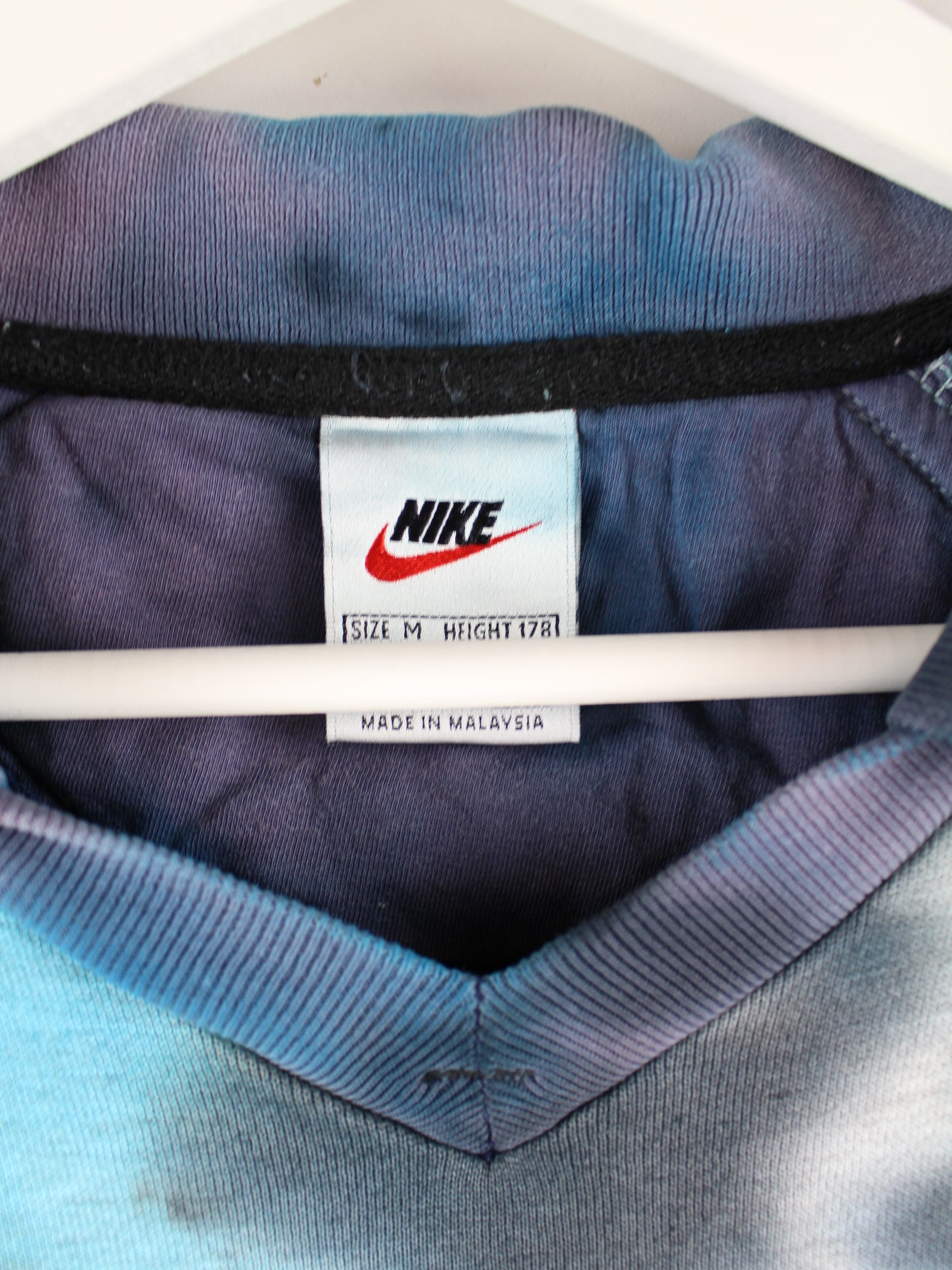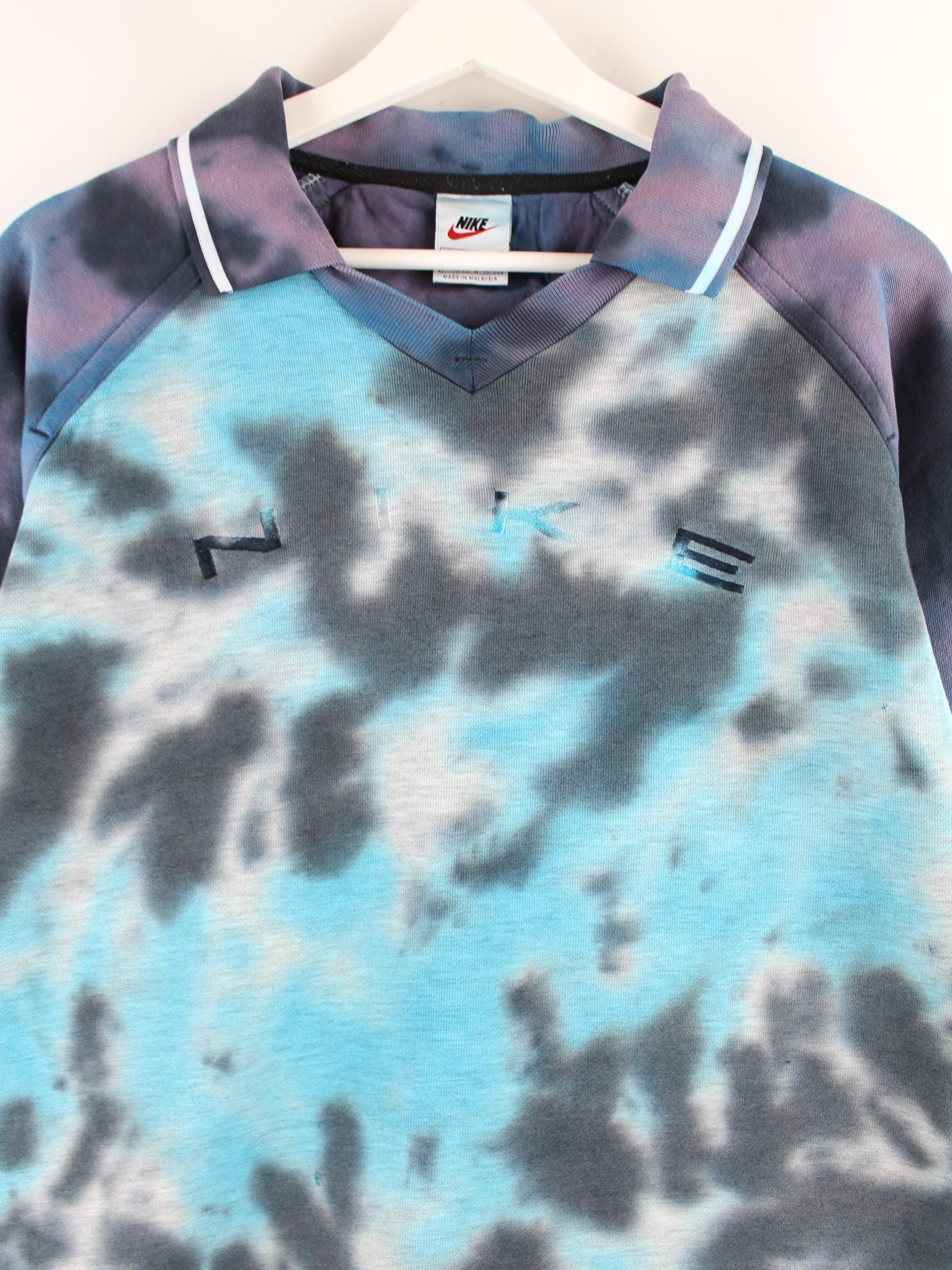 Nike 90s Vintage Spellout Embroidered Tie Dye Polo Sweater Blue M