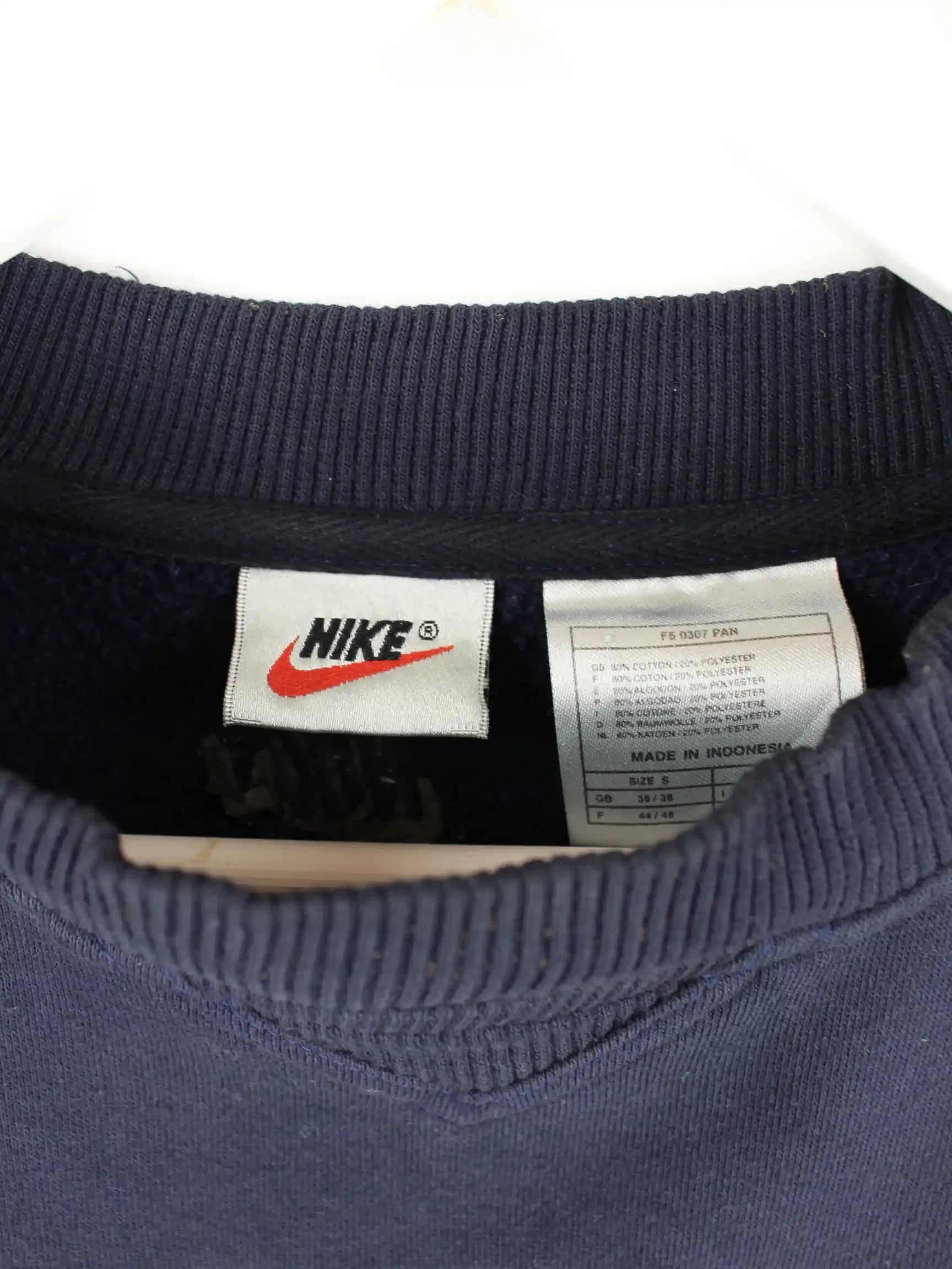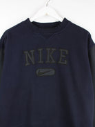 Sweater aus dem Hause Nike in Größe S aus den 90'ern. Er ist aus einer Baumwollmischung hergestellt und in Blau im Bestand.