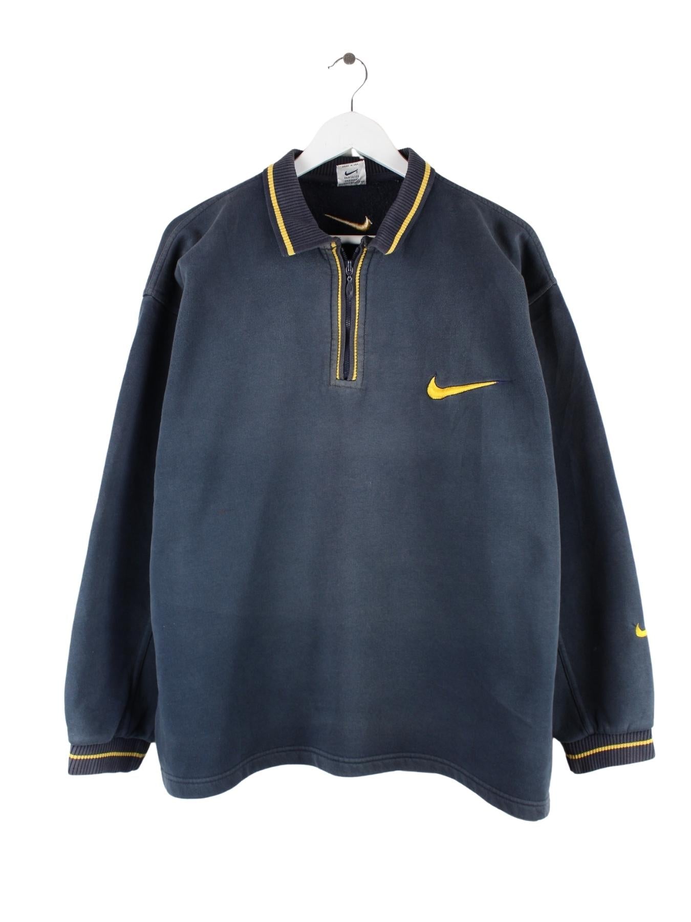 Nike 90s Vintage Swoosh Embroidered Half Zip Sweater Schwarz XL