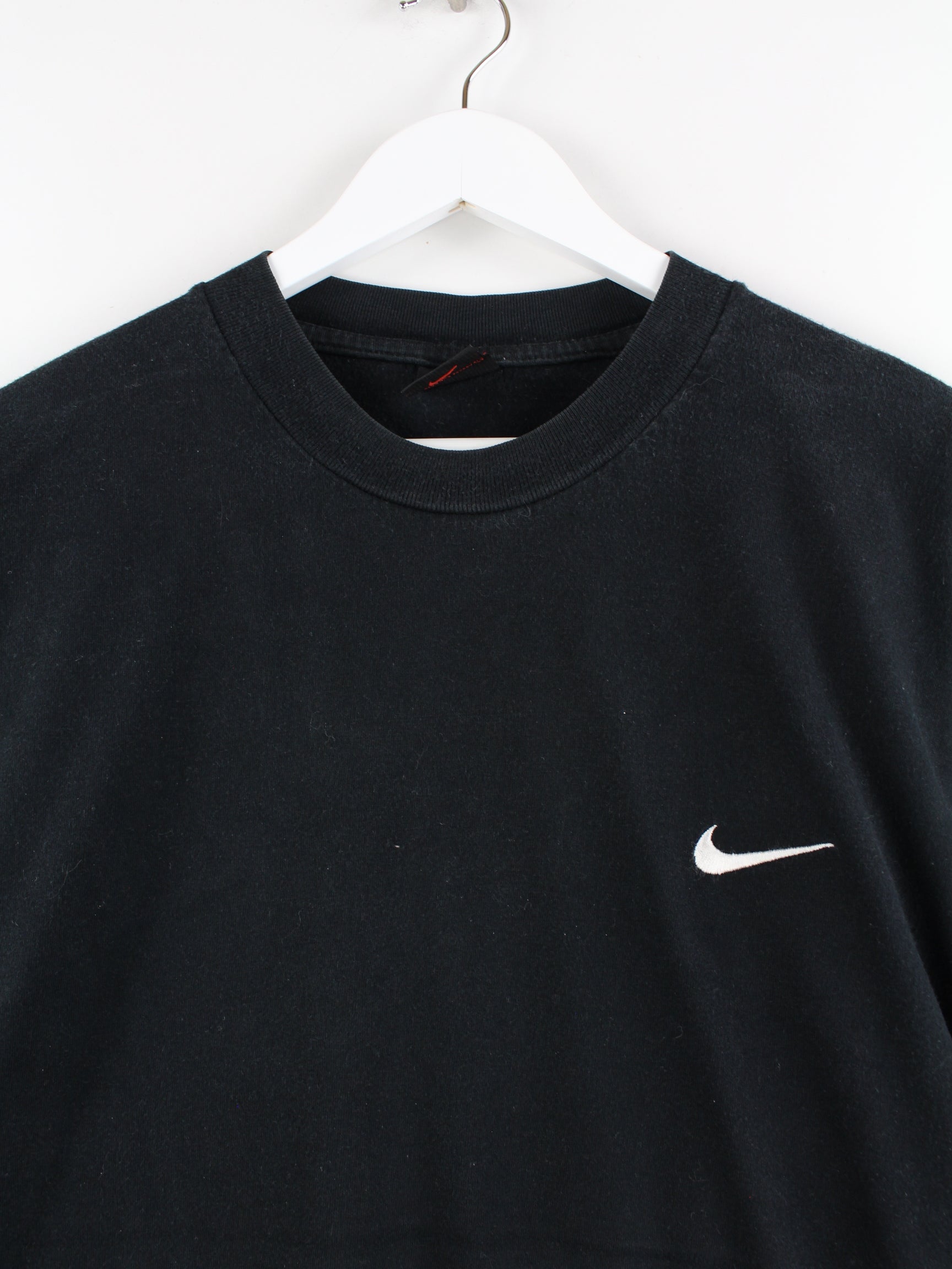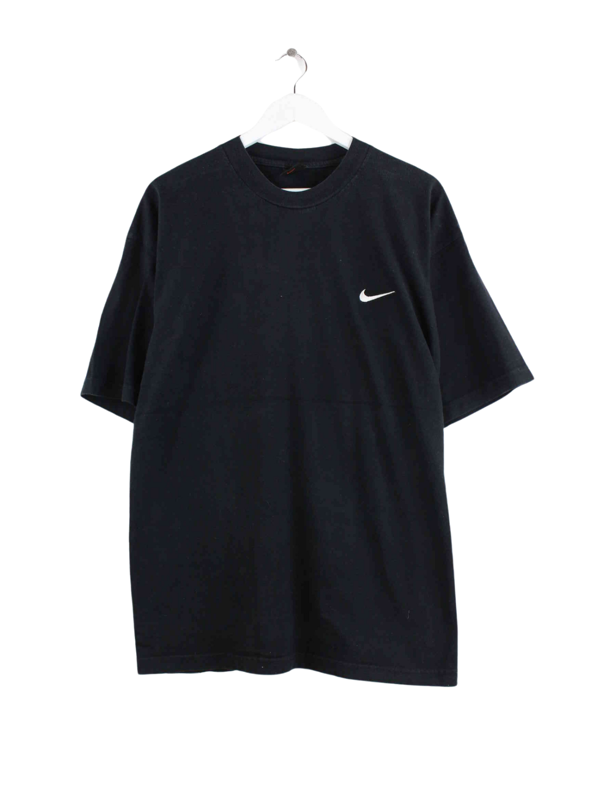 Black t-shirt from the Nike brand from the 90s in size L. It is made of cotton and is in stock in very good condition.