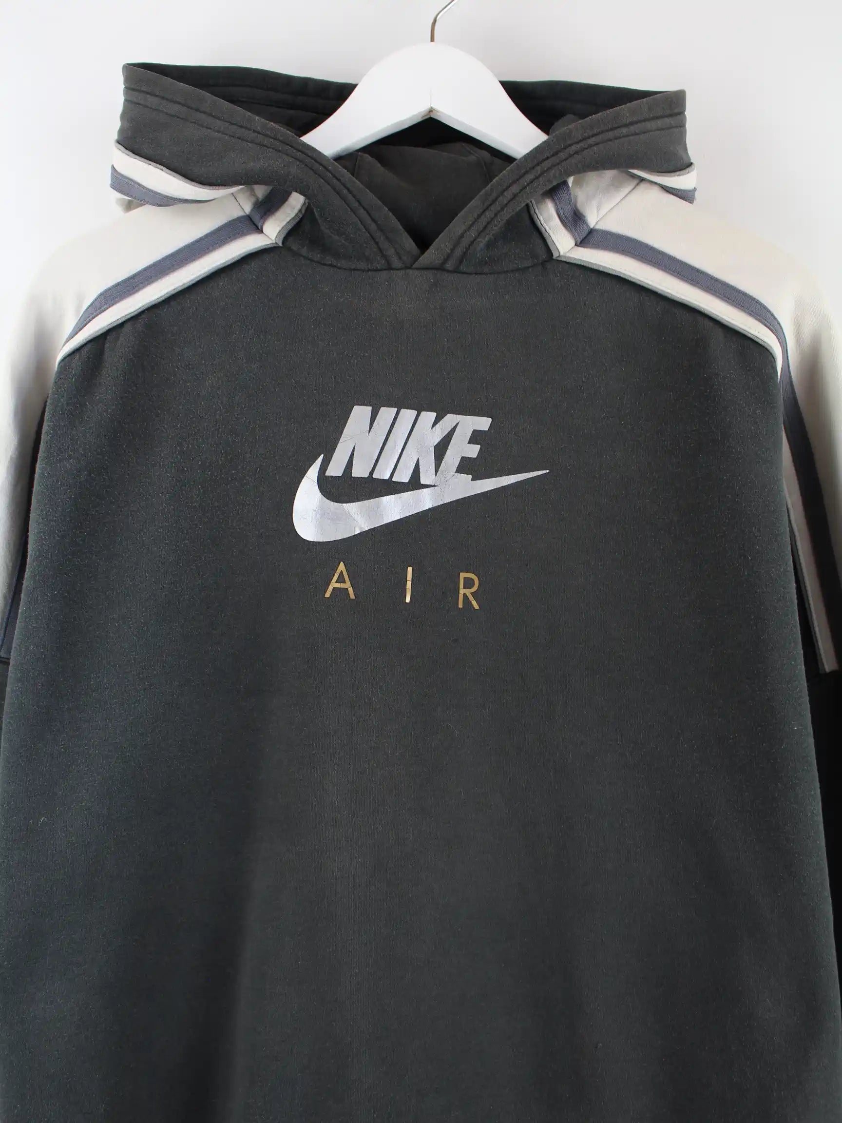 Hoodie des Labels Nike in Größe M. Er ist aus einer Baumwollmischung gemacht und in Grau in Stock. Mit seltenem 00s Print.