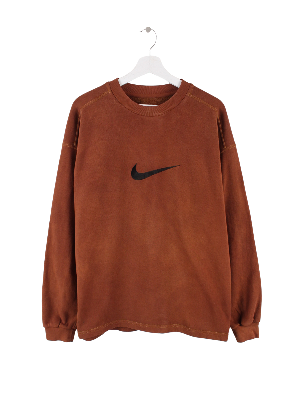 Brown vintage Nike sweater with a large Swoosh on the front.