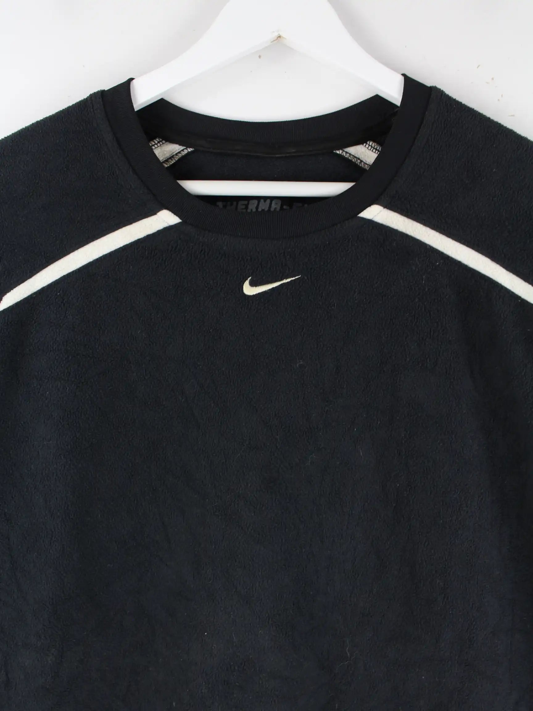 Schwarzer Sweater vom Label Nike in Größe L. Er ist aus weichem Fleece hergestellt und in sehr gutem Zustand auf Lager.