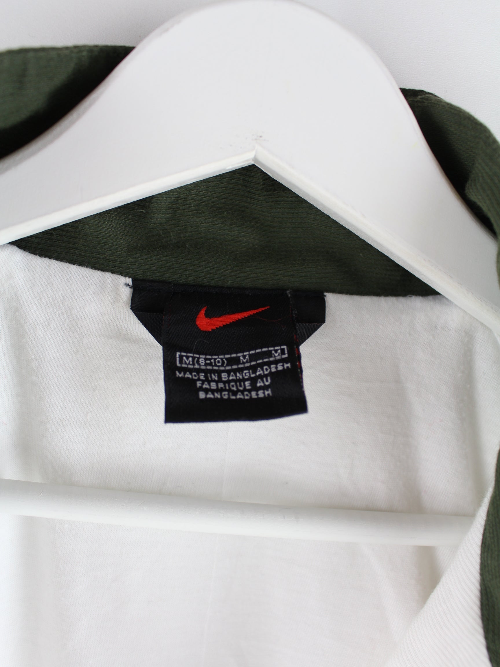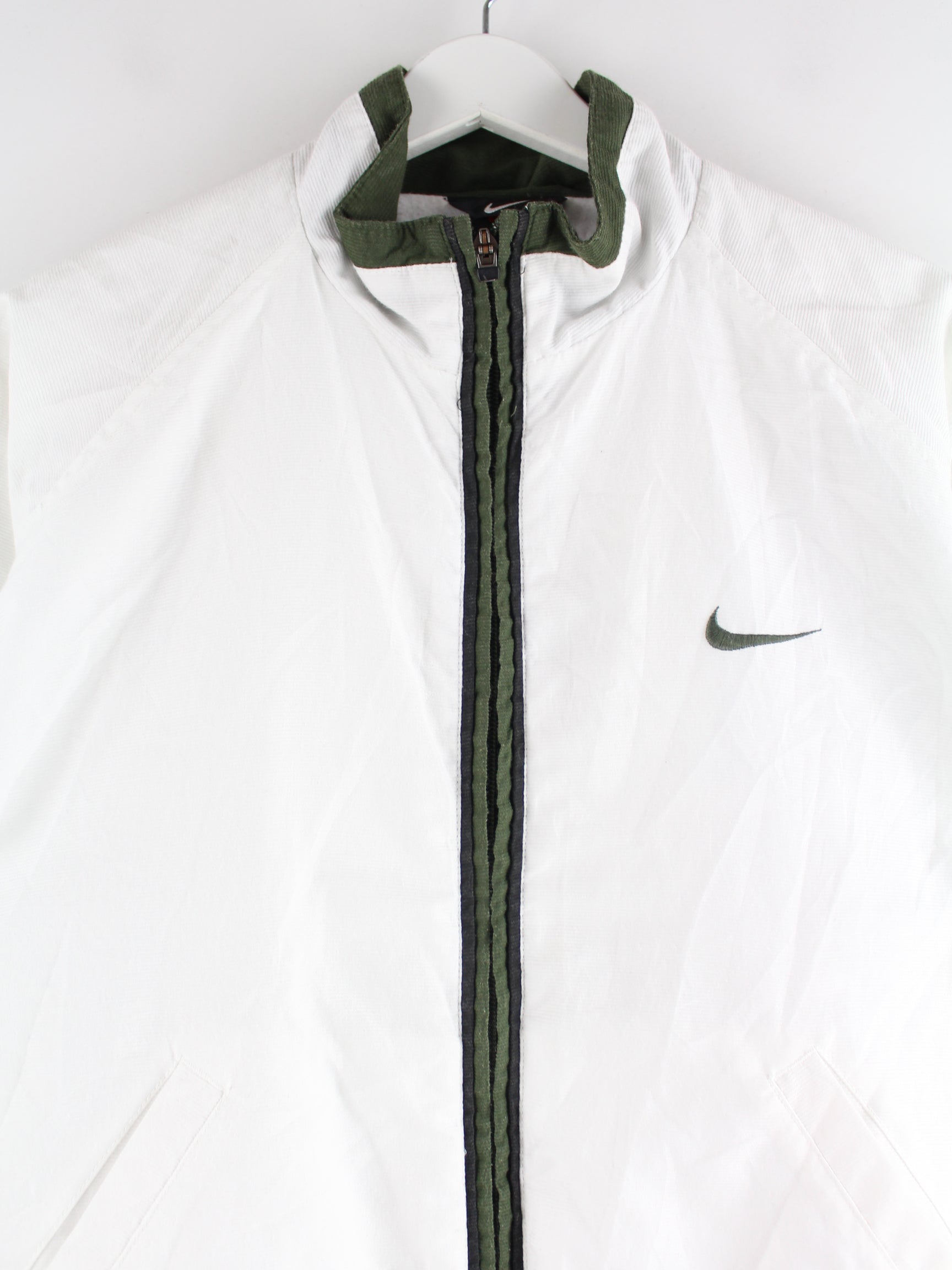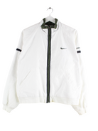 White tracksuit jacket with embroidery from the Nike brand from the 90's in size S. It is made of synthetic material and in good condition.