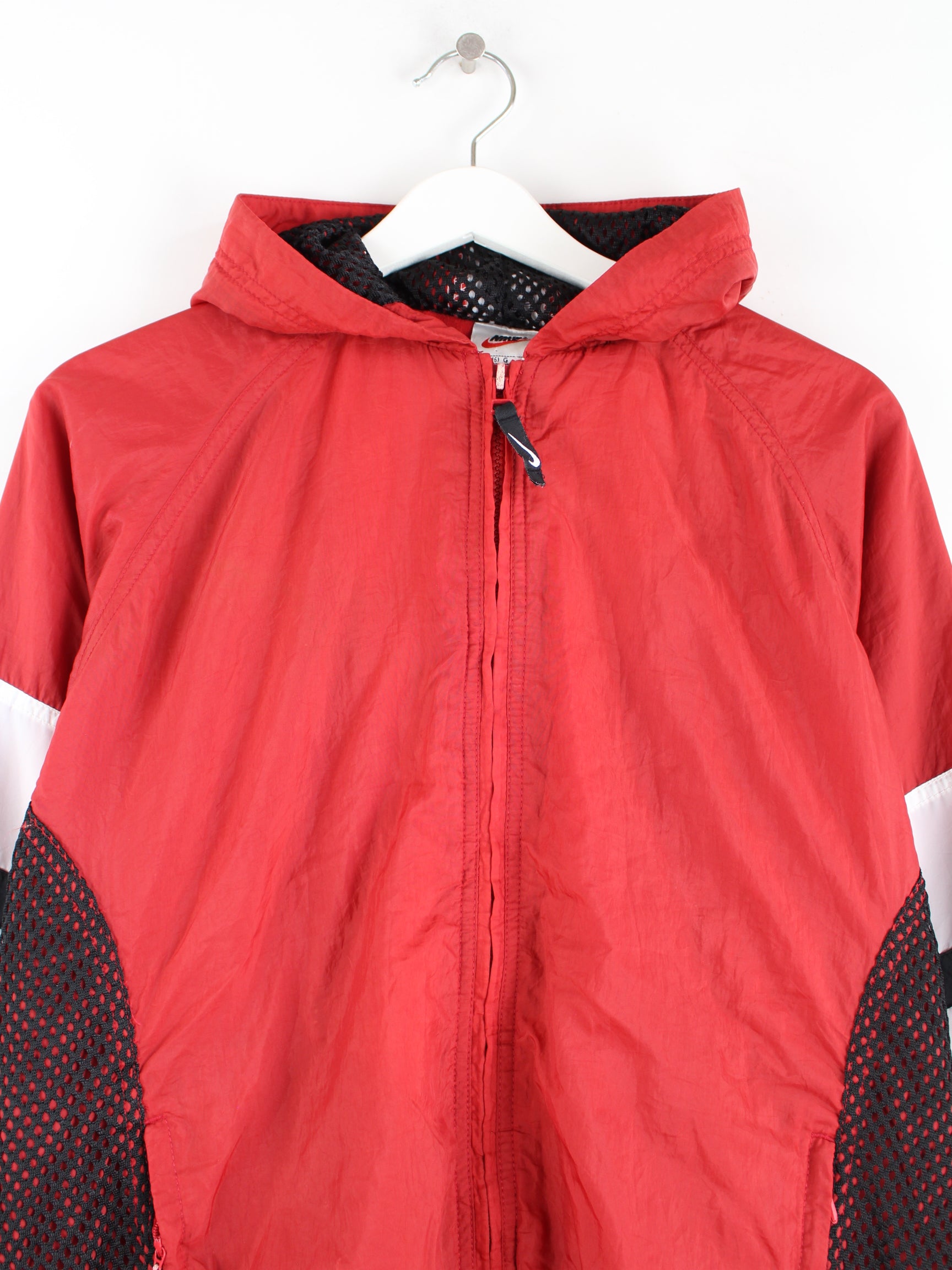 Training jacket from the brand Nike in size S from the 90's. It is made of synthetic material and is in stock in red.