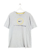 Graues T-Shirt vom Label Nike in Größe L. Es ist aus einer Baumwollmischung produziert. Den Zustand würden wir als 'In Ordnung' bezeichnen (vergl. Bilder).