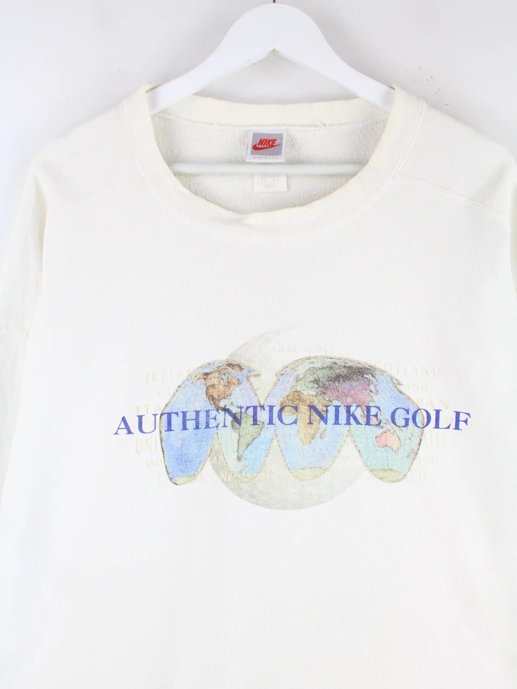 Nike Golf 80s Vintage Silver Tag Print Sweater Weiß XXL