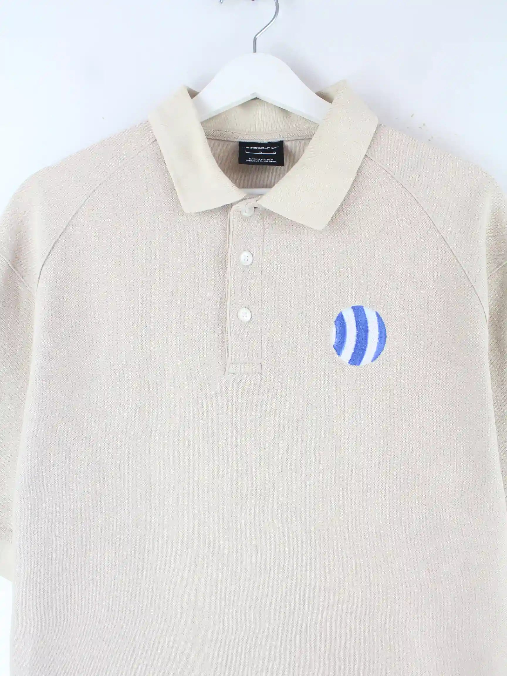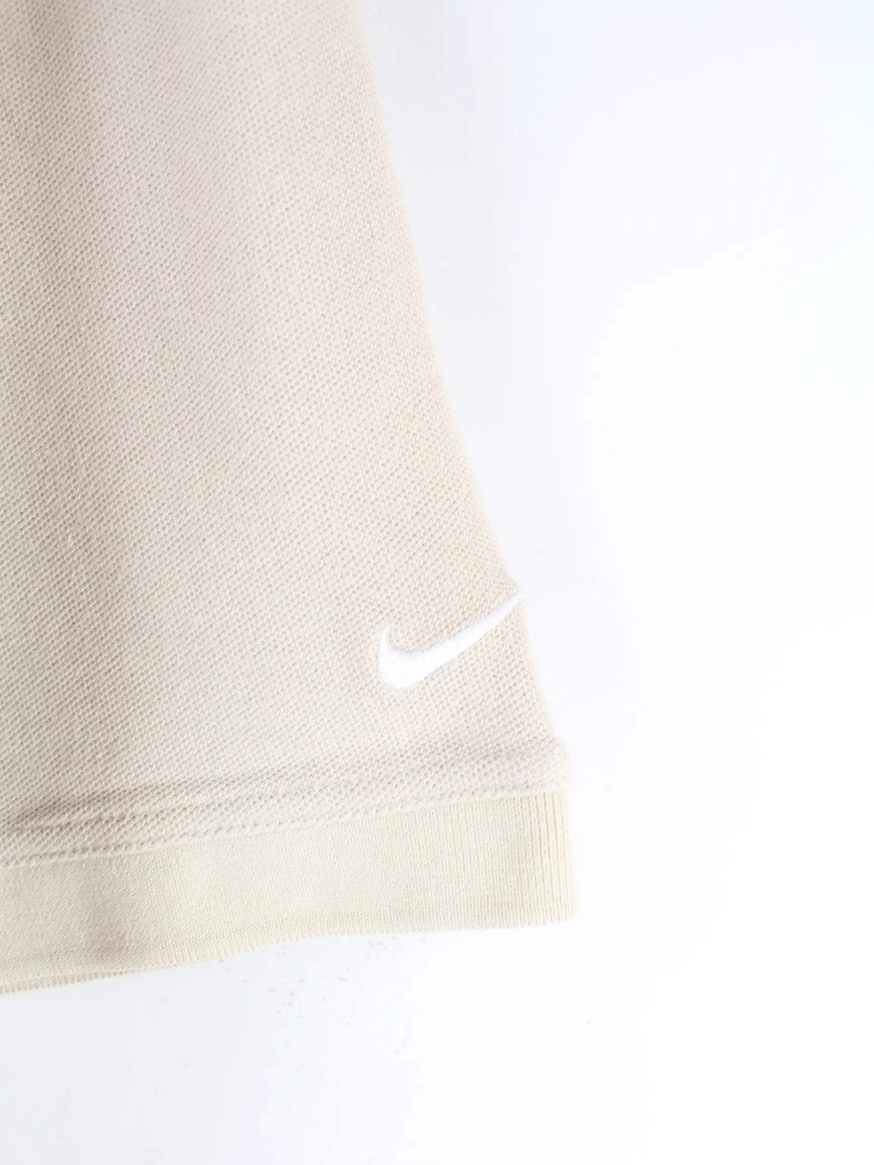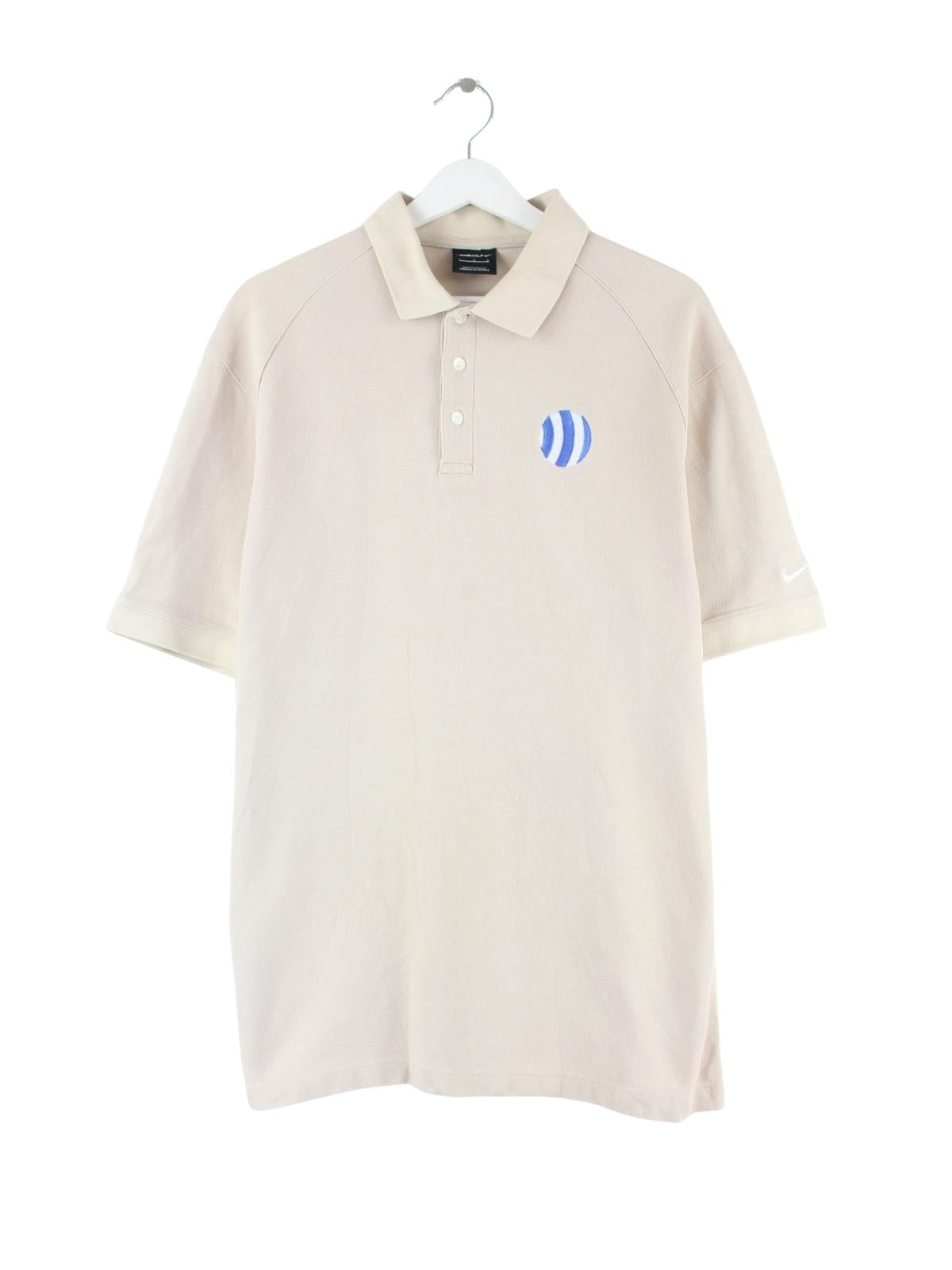 Beigefarbenes Poloshirt der Marke Nike in Größe L. Es ist aus Baumwolle produziert und in sehr gutem Zustand in Stock.