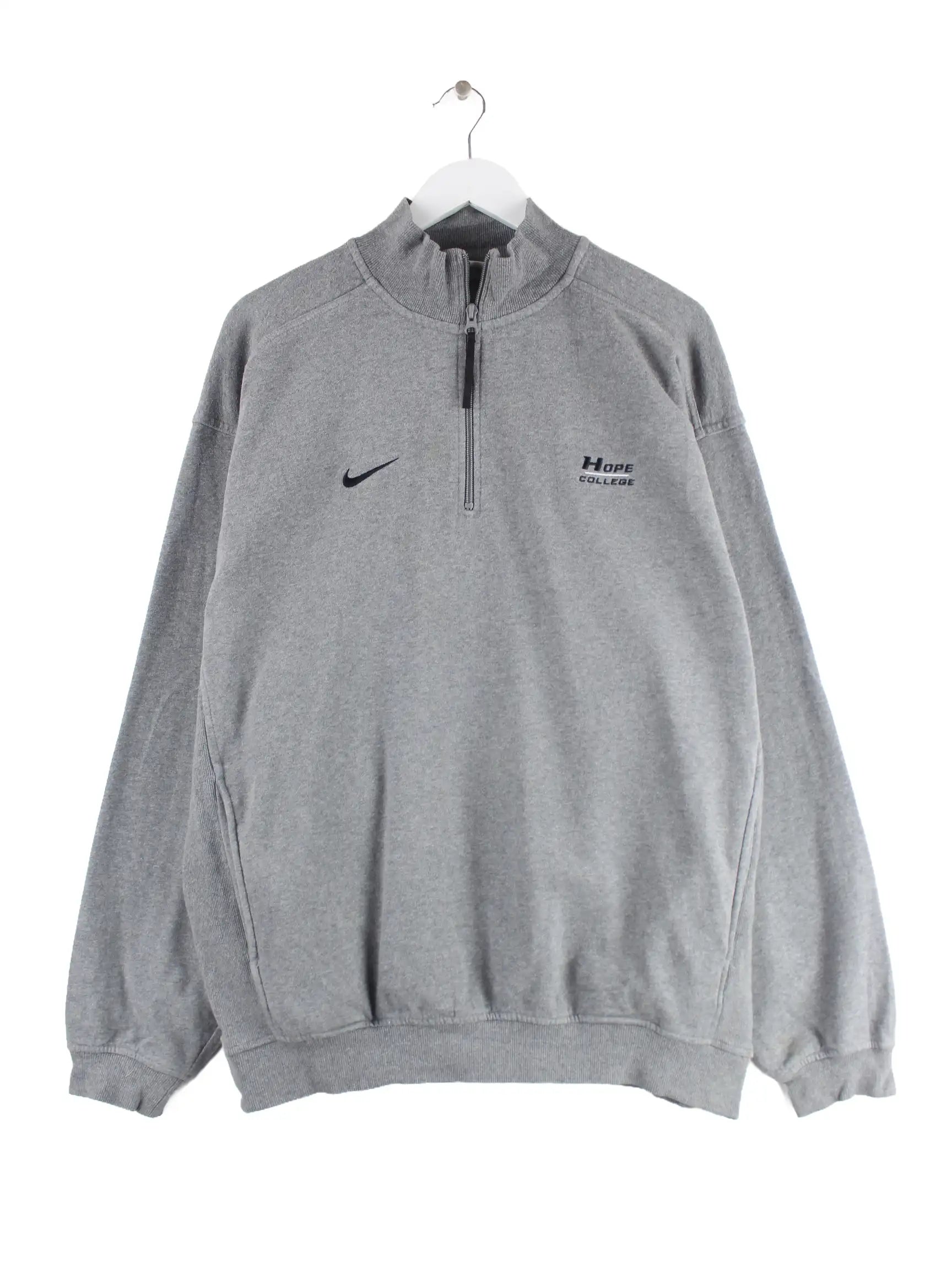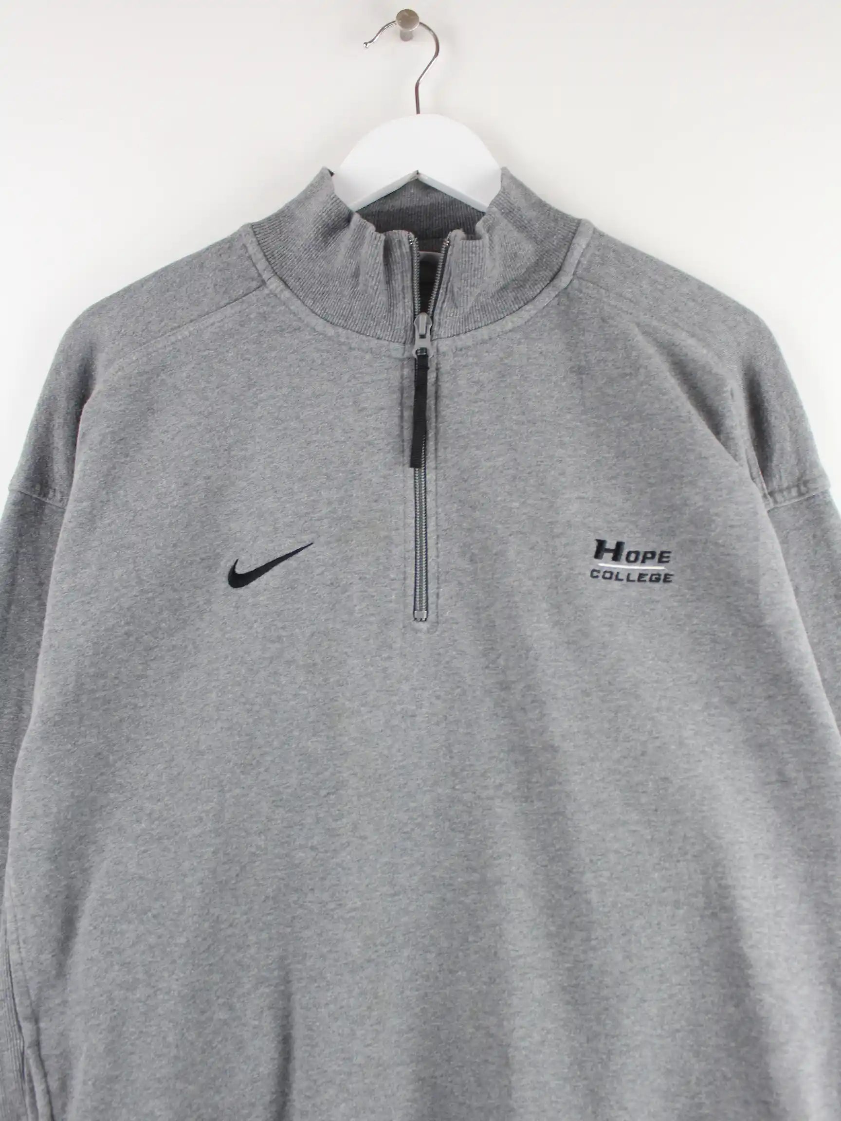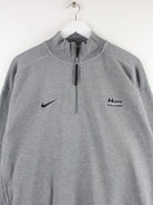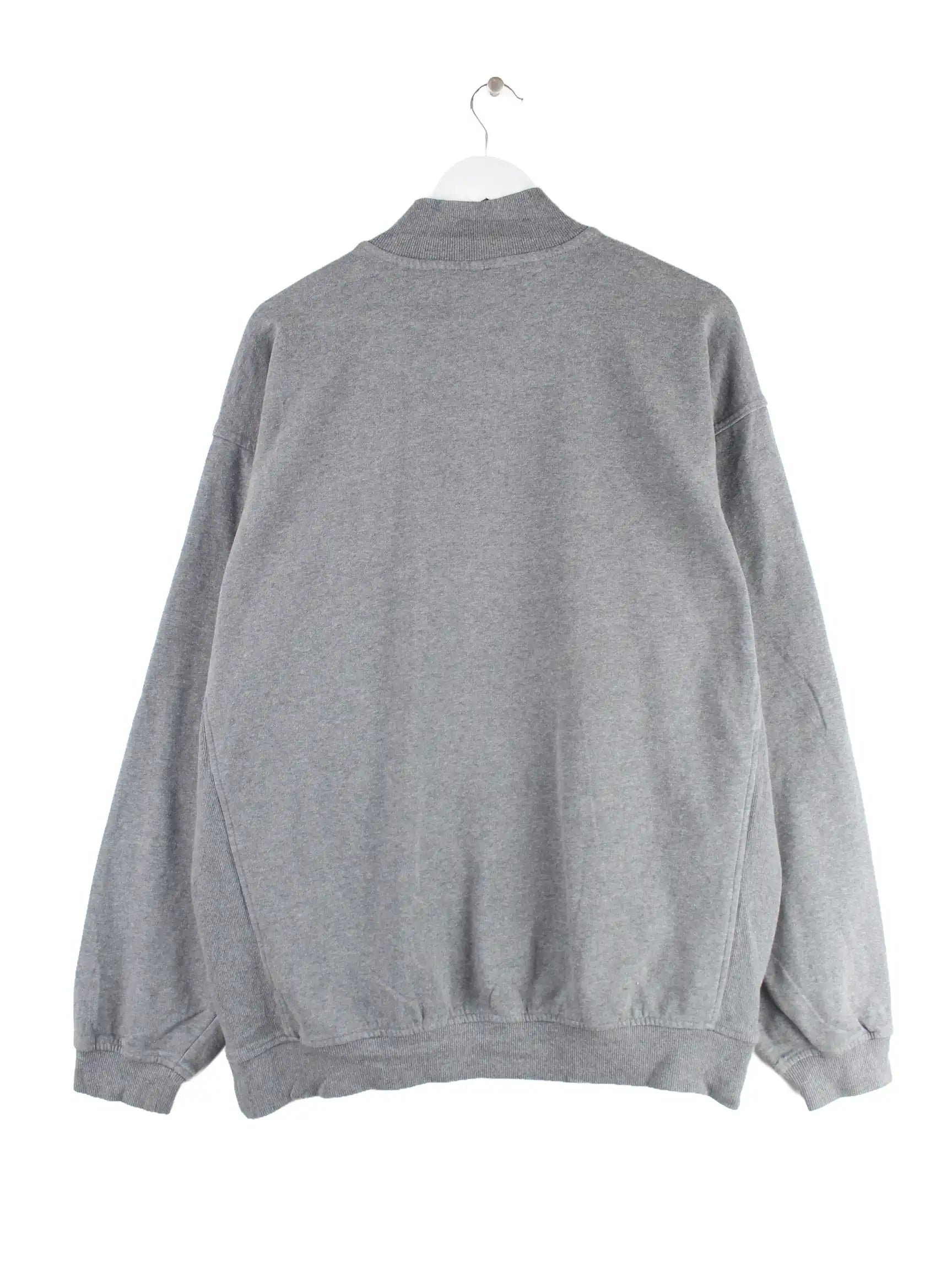 Sweater des Labels Nike mit halbem Reißverschluß in Größe L. Er ist aus einer Baumwollmischung angefertigt und in Grau bei uns vorrätig.