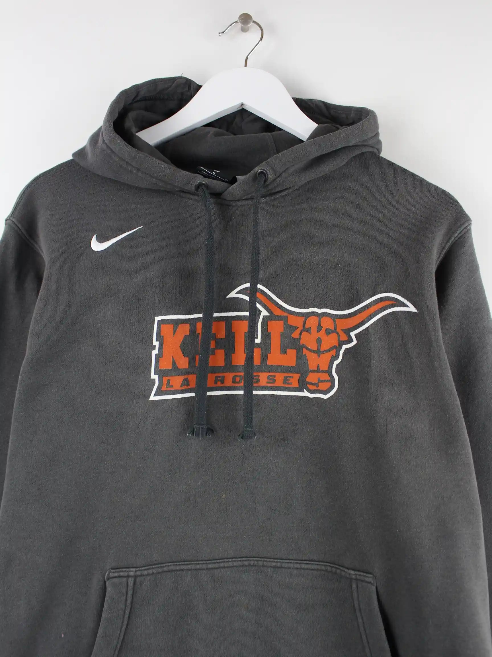 Grauer Hoodie vom Label Nike in Größe M. Er ist aus einer Baumwollmischung produziert und in gutem Zustand bei uns zu bekommen. Mit chiquem Lacrosse Print.