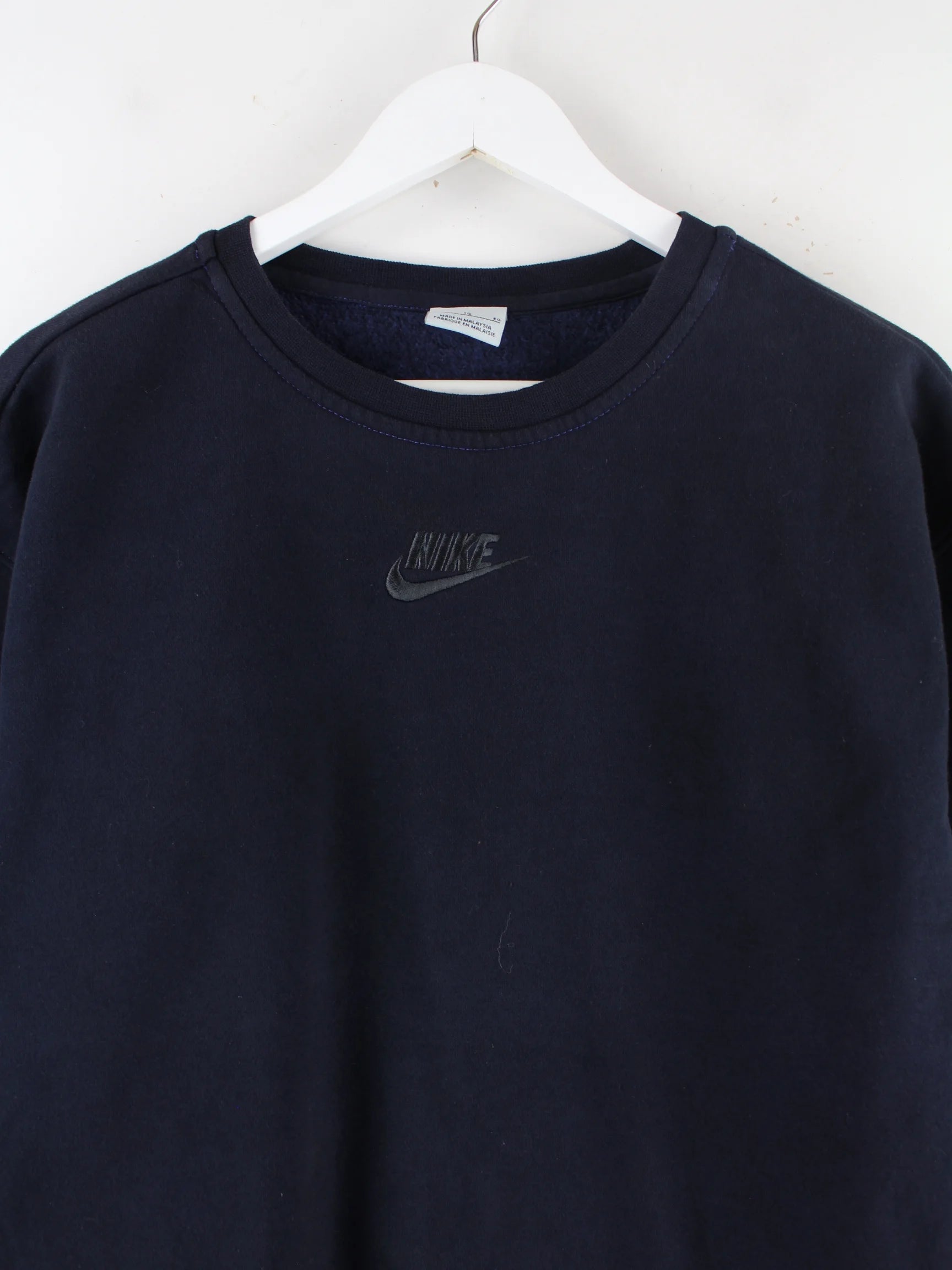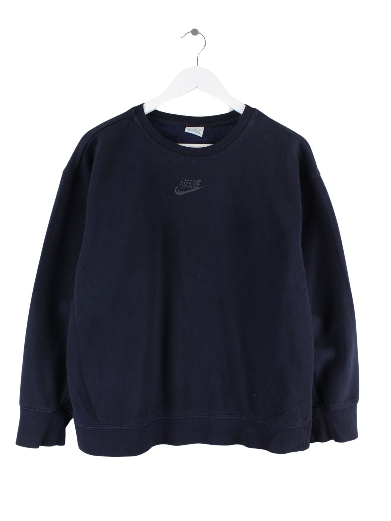 Sweater von Nike mit Stickereien in Größe XL. Er ist aus einer Baumwollmischung angefertigt und in Blau im Bestand.