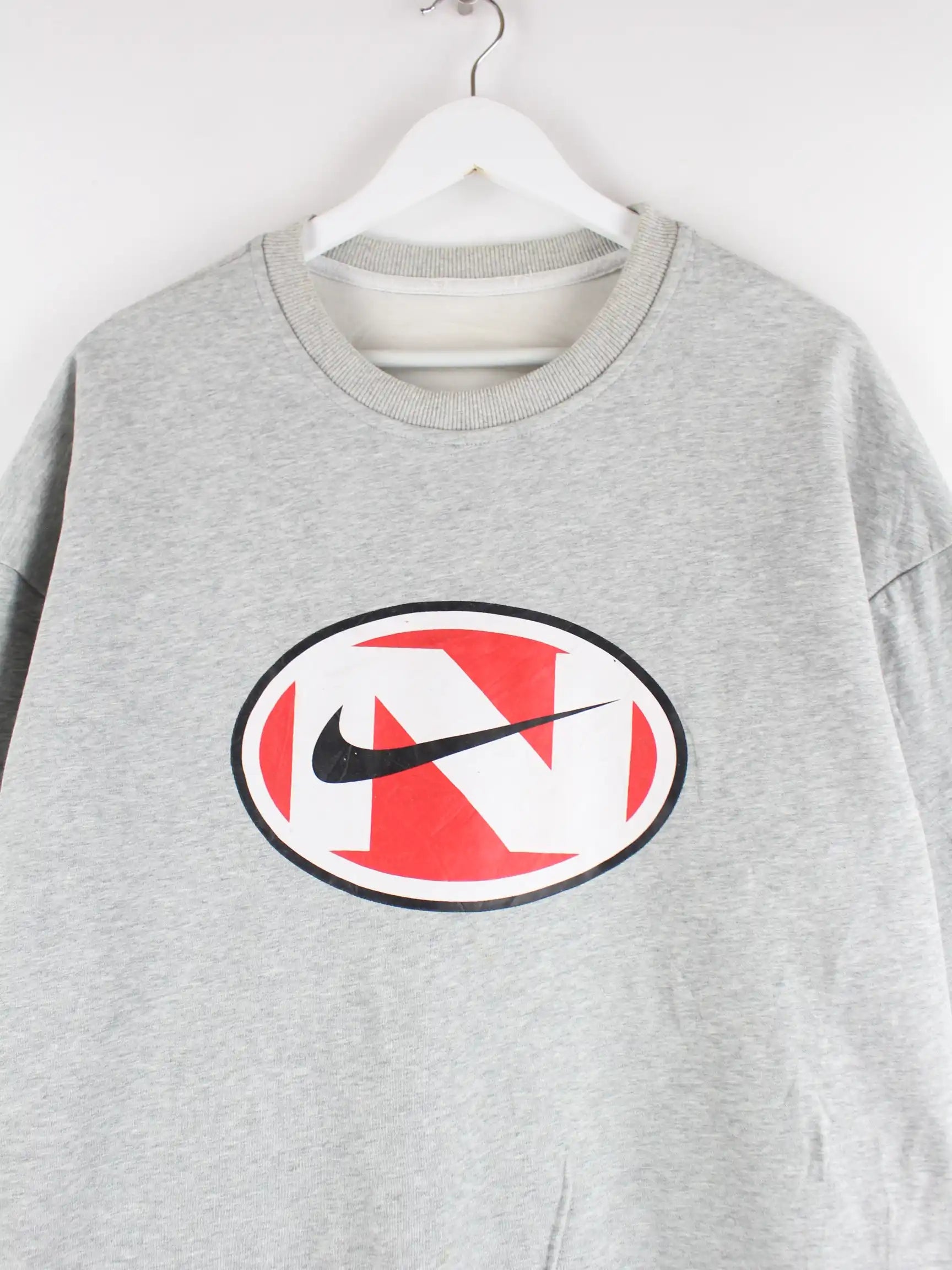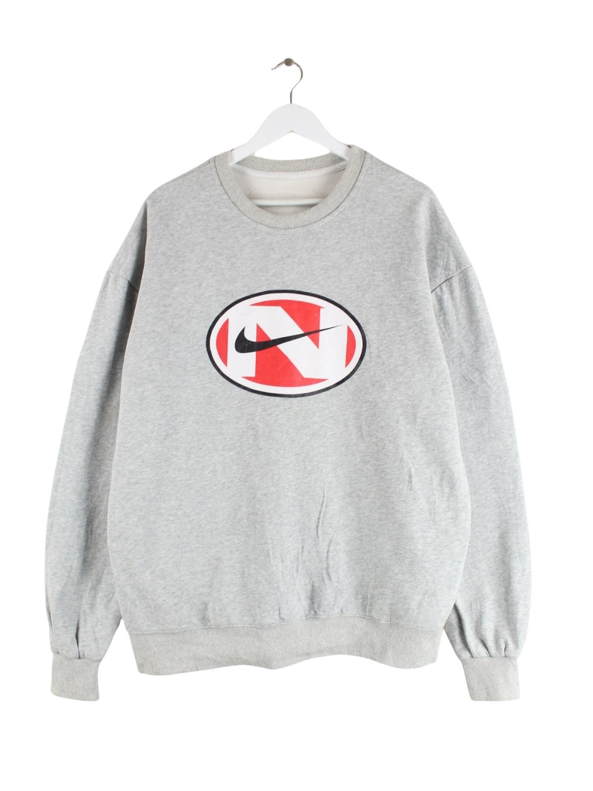 Grauer Sweater der Marke Nike in Größe XL. Er ist aus einer Baumwollmischung gefertigt und in gutem Zustand zu haben. Mit tollem Print.
