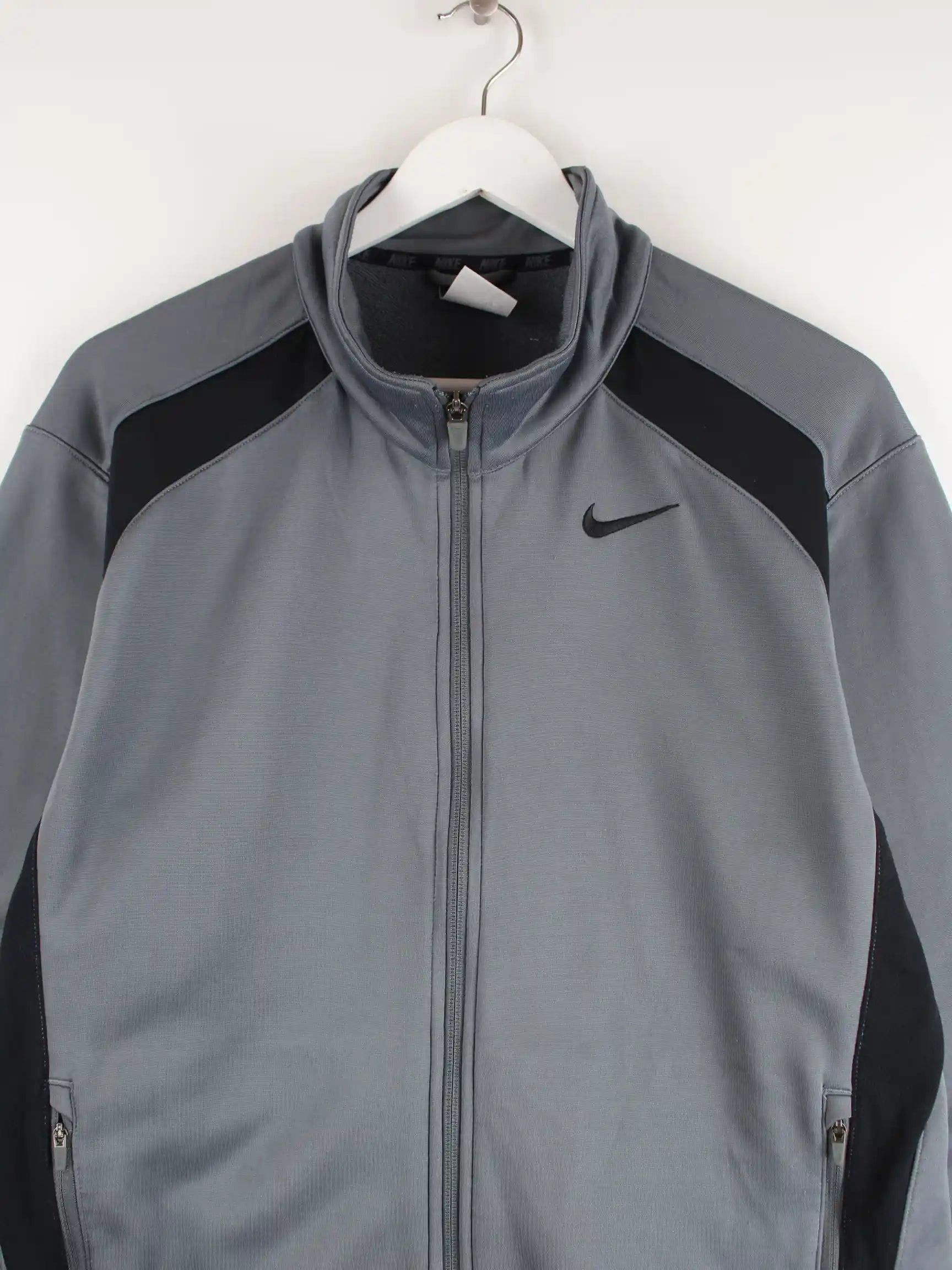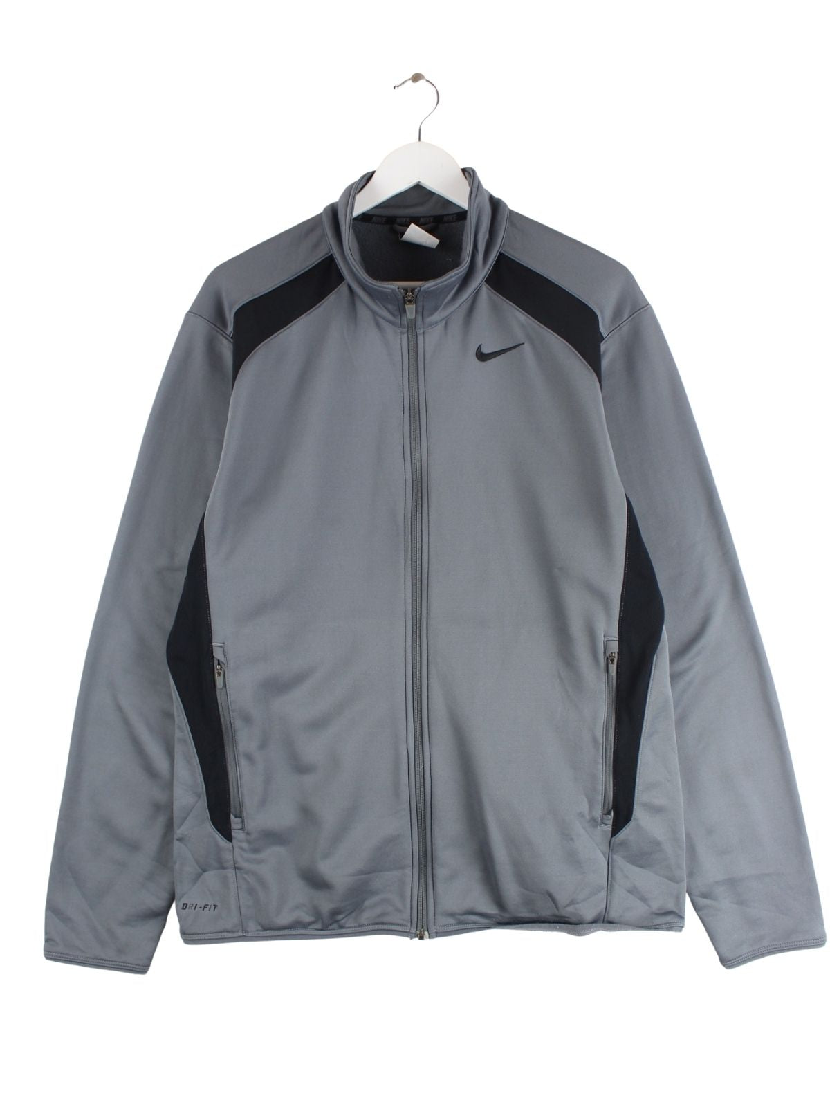 Trainingsjacke vom Brand Nike in Größe L. Sie ist aus Synthetik gefertigt und in Grau bei uns zu bekommen.