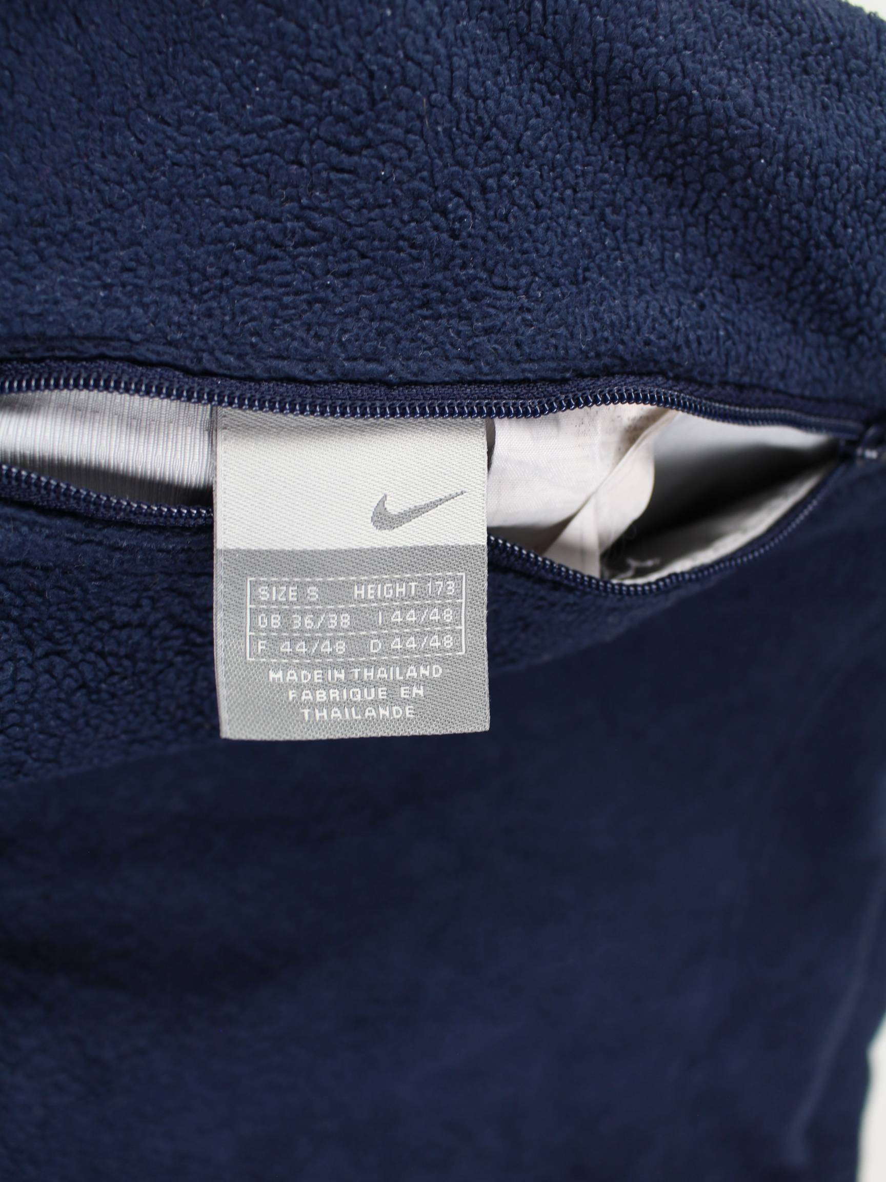 Jacke vom Label Nike mit kurzem Reißverschluß in Größe S. Sie ist aus Synthetik gefertigt und in Blau bei uns vorrätig.