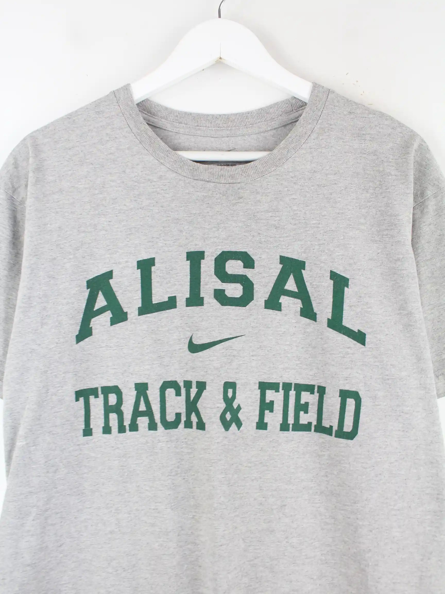Graues T-Shirt vom Label Nike in Größe M. Es ist aus Baumwolle und in gutem Zustand zu bekommen. Mit tollem Alisal Print.