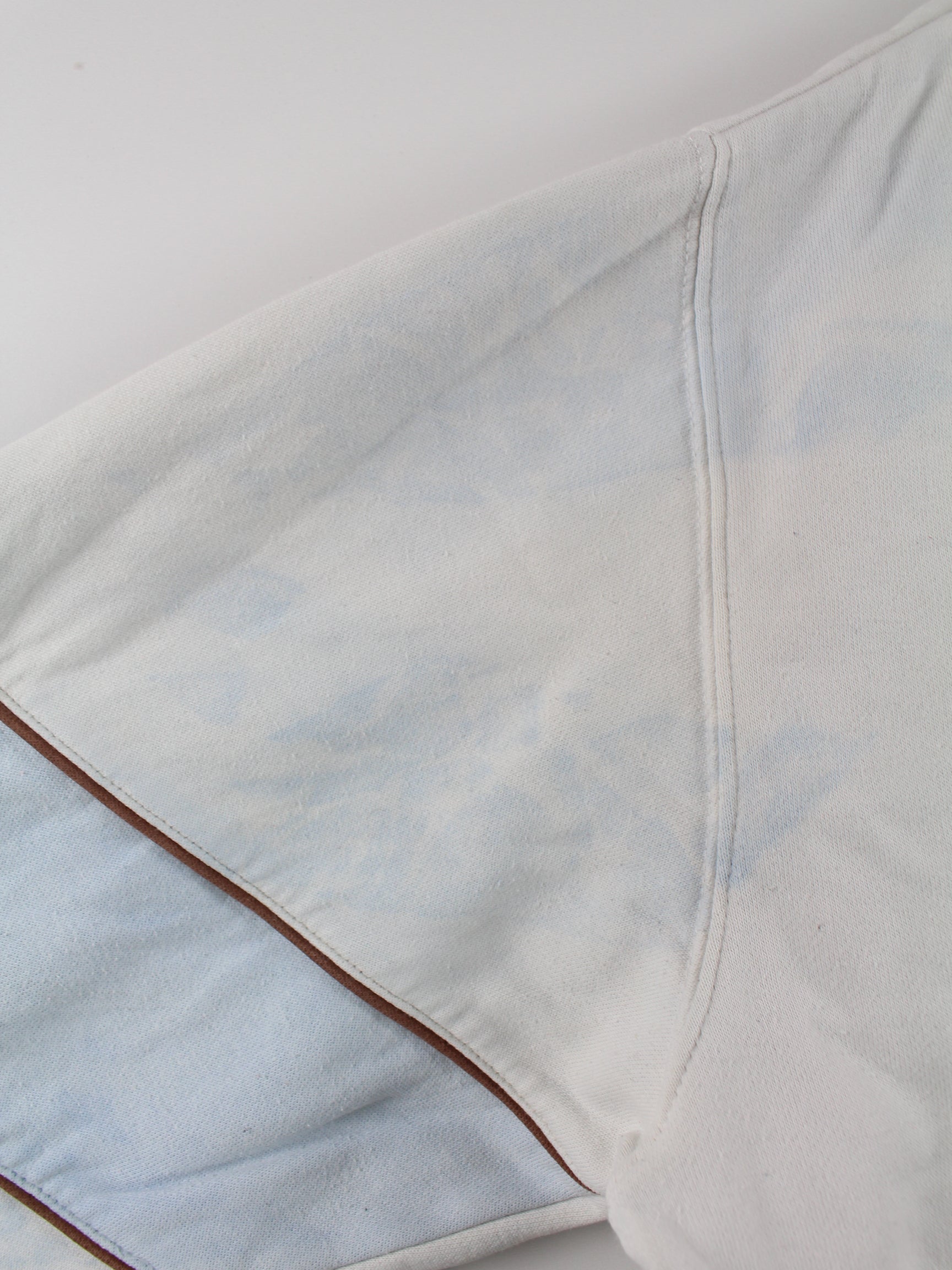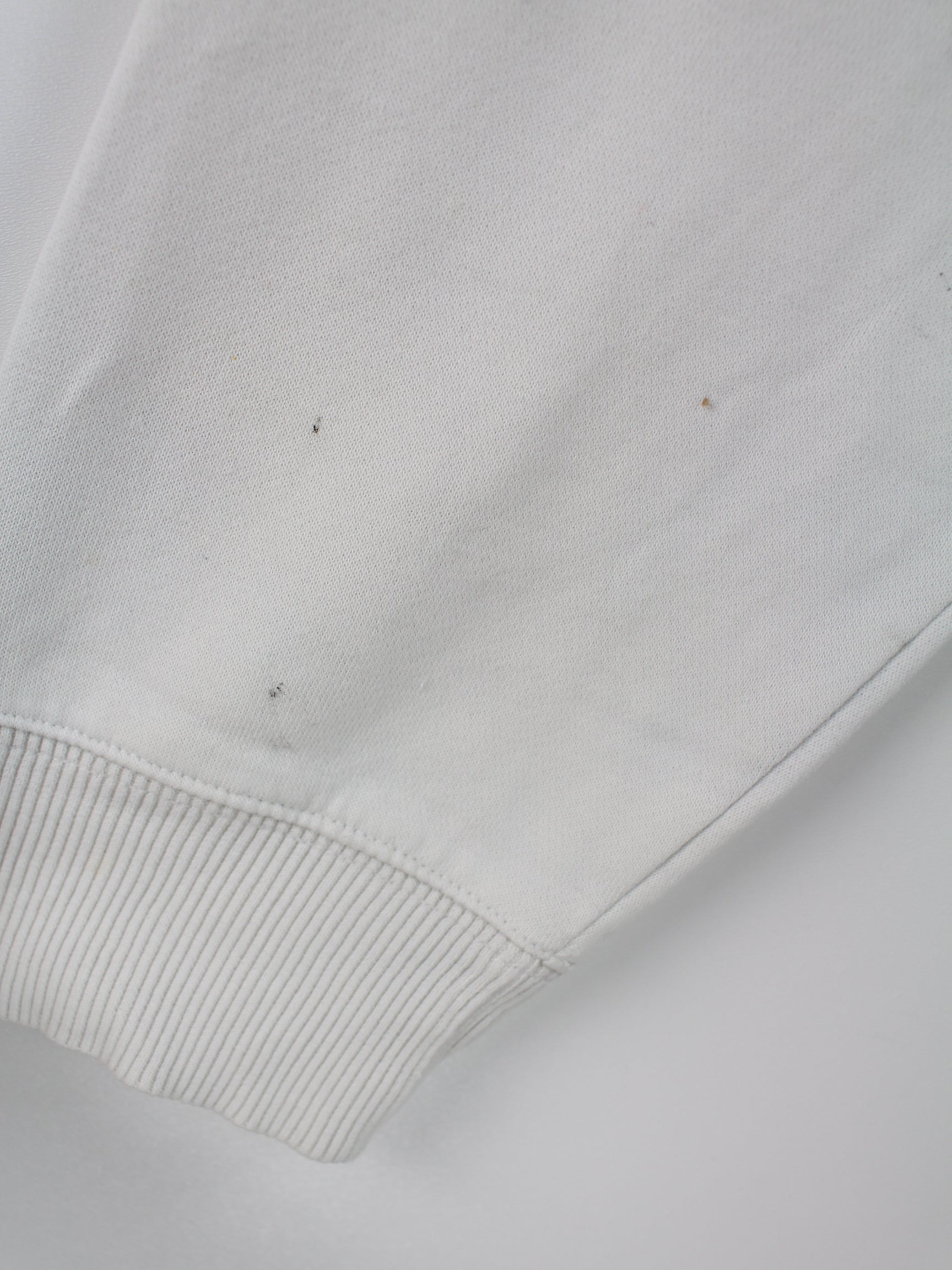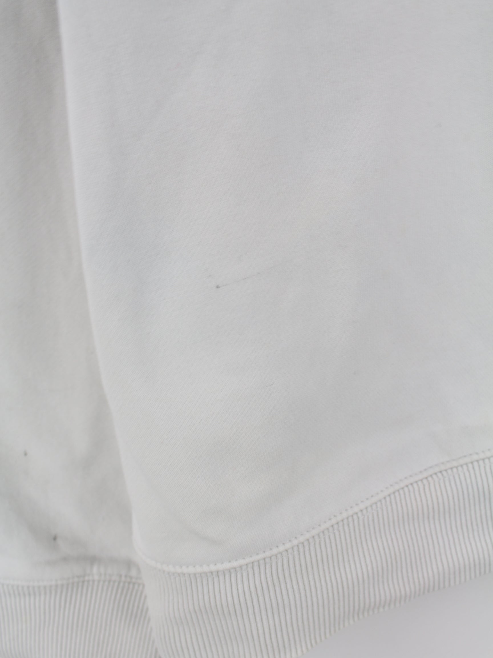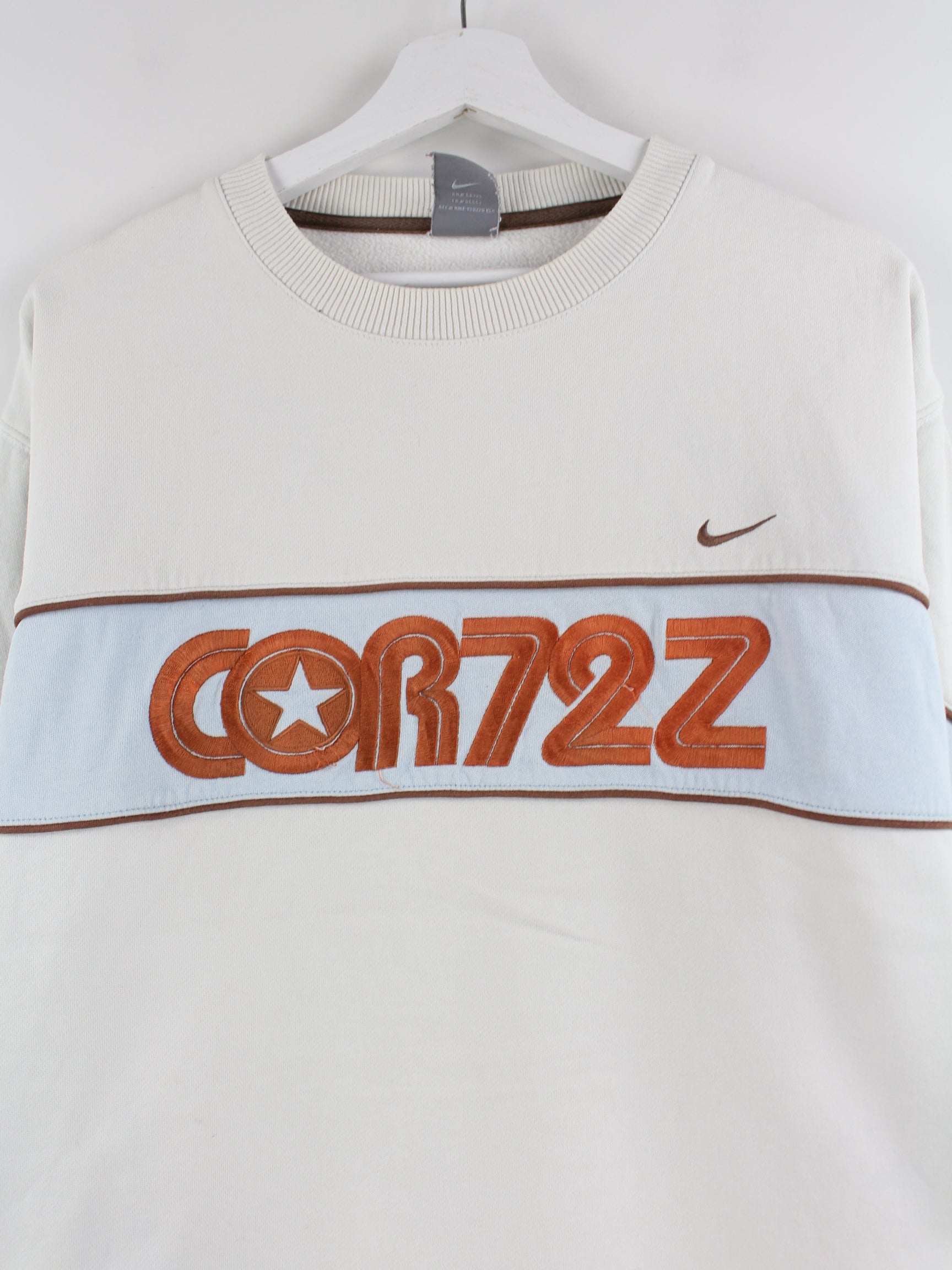 White sweater with embroidery from the Nike label from the early 2000s in size L. It is made from a cotton blend. We would describe the condition as 'OK' (see pictures).