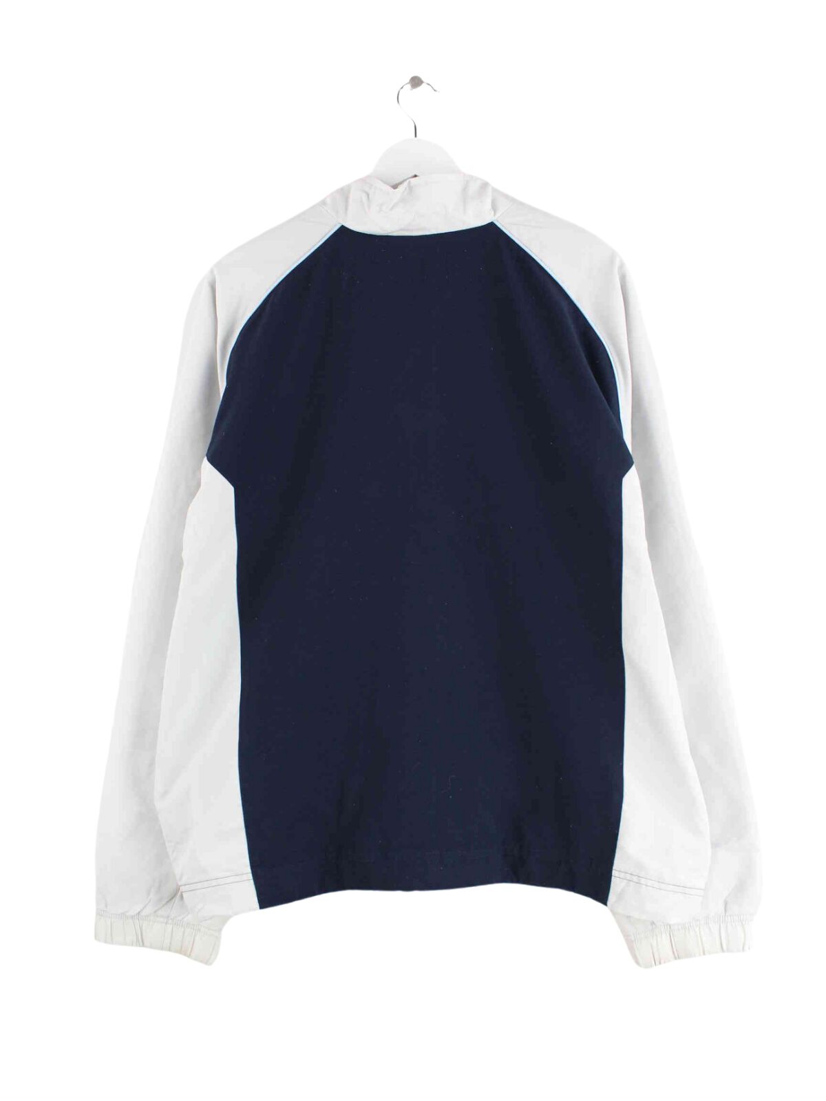 Blue training jacket from the Nike label from the early 2000s in size XL. It is made of synthetic material and is available from us in good condition.