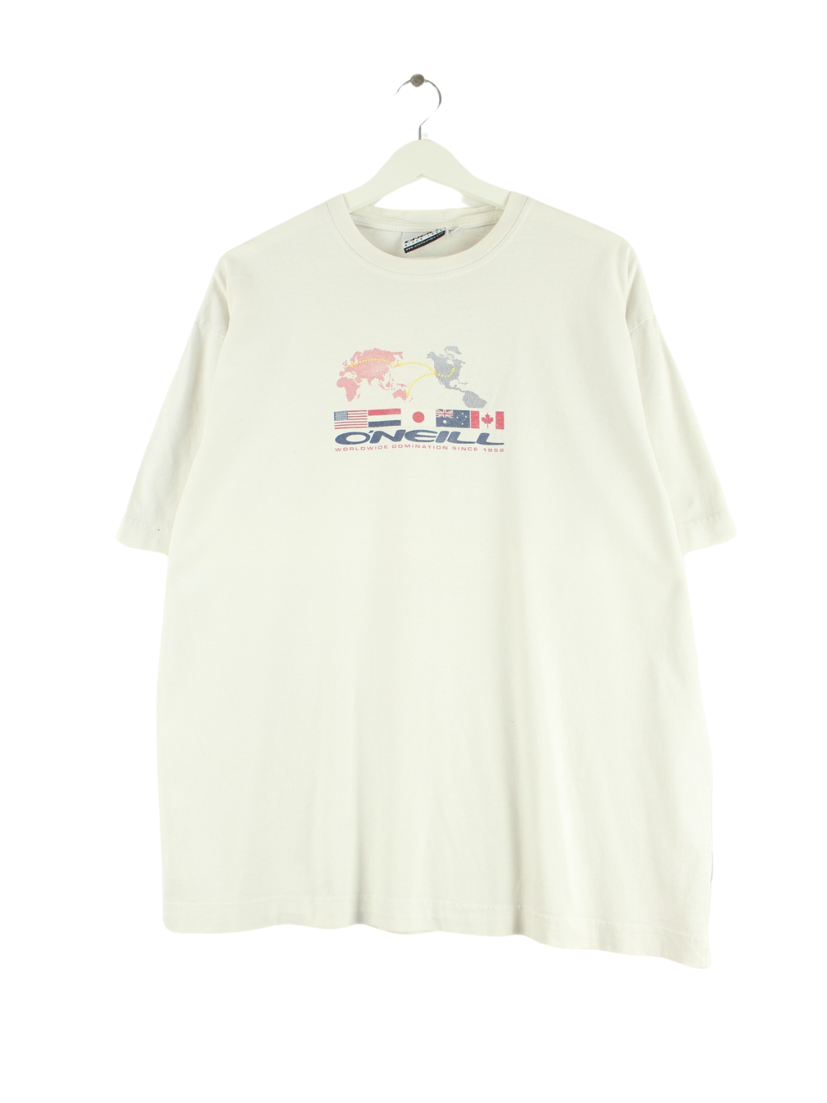 White T-shirt from O'Neill from the 90's in size L. It is made of cotton and in good condition. With a great international print.