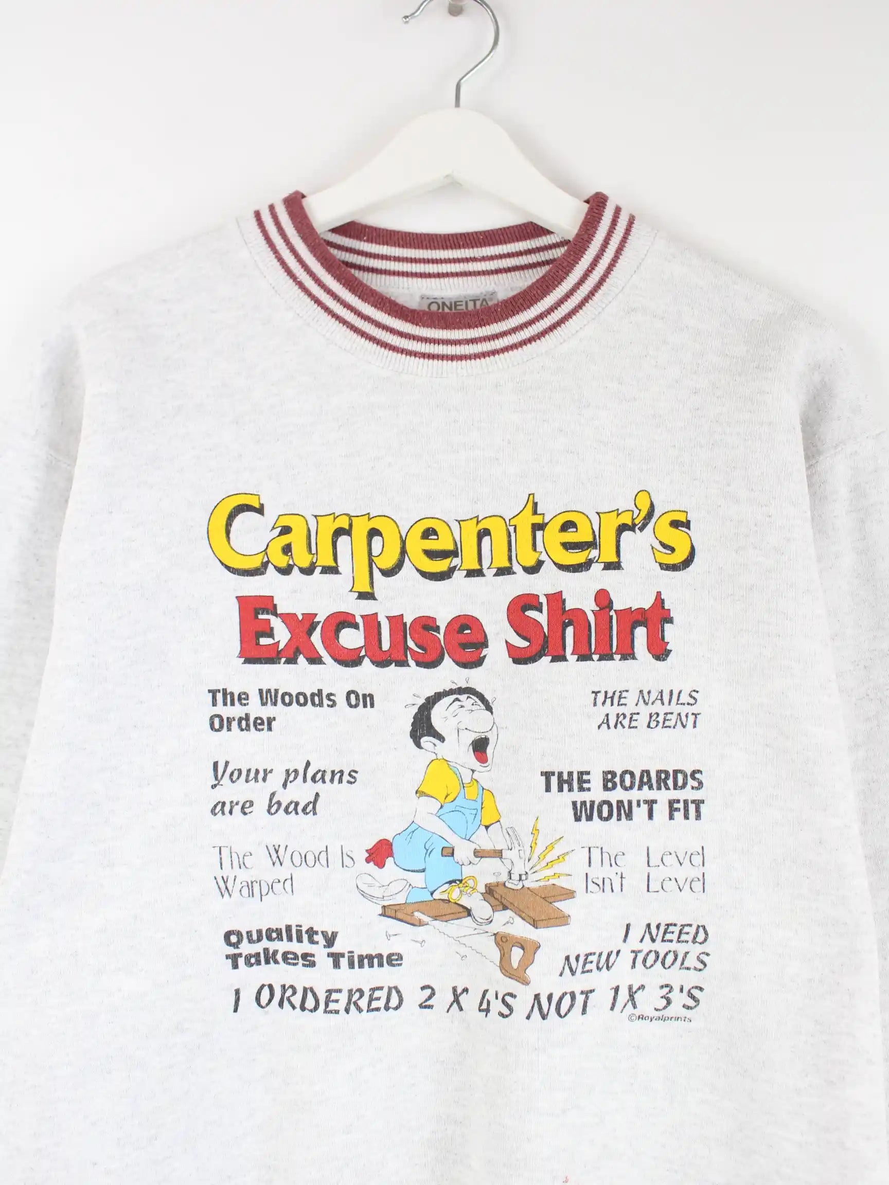 Oneita 90s Vintage Funny Carpenter Print Sweater Grau M