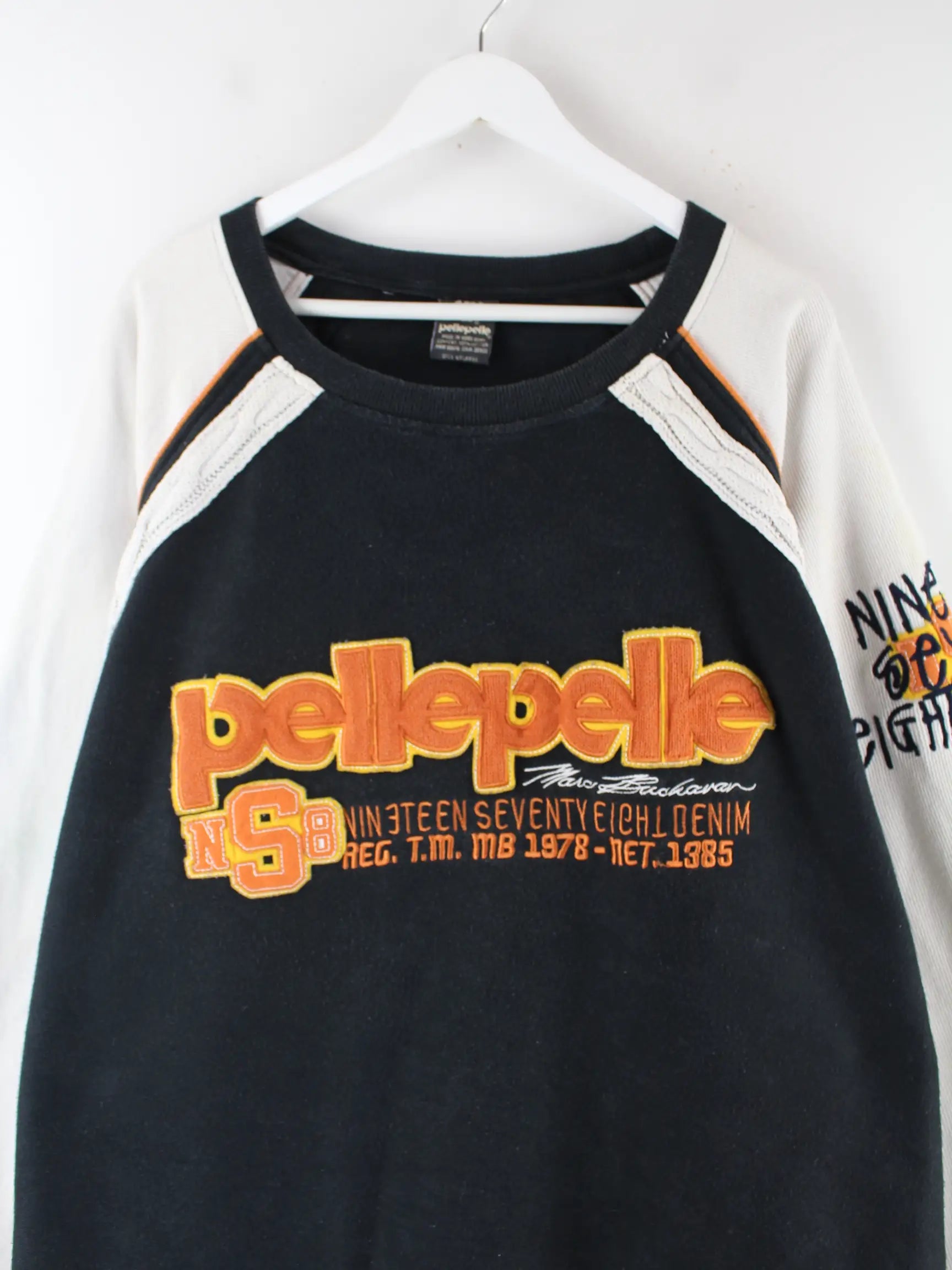Schwarzer Sweater mit gesticktem Logo vom Label Pelle Pelle in Größe 6XL. Er ist aus einer Baumwollmischung produziert und in gutem Zustand lieferbar.
