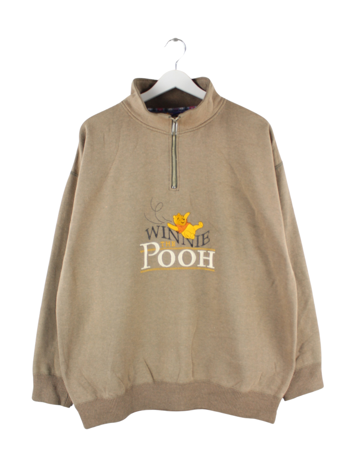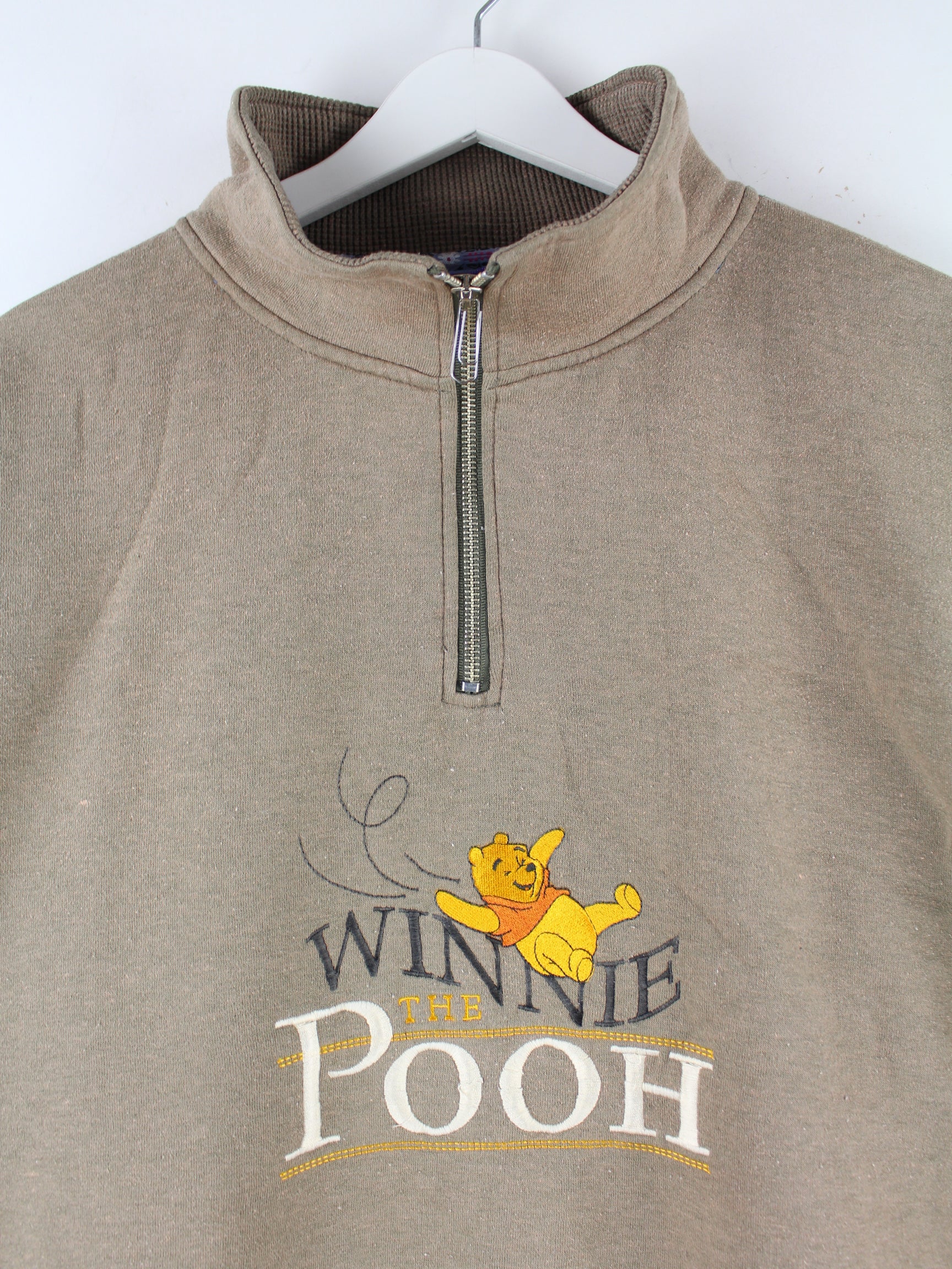 Pooh 90s Vintage Embroidered Half Zip Sweater Braun XL