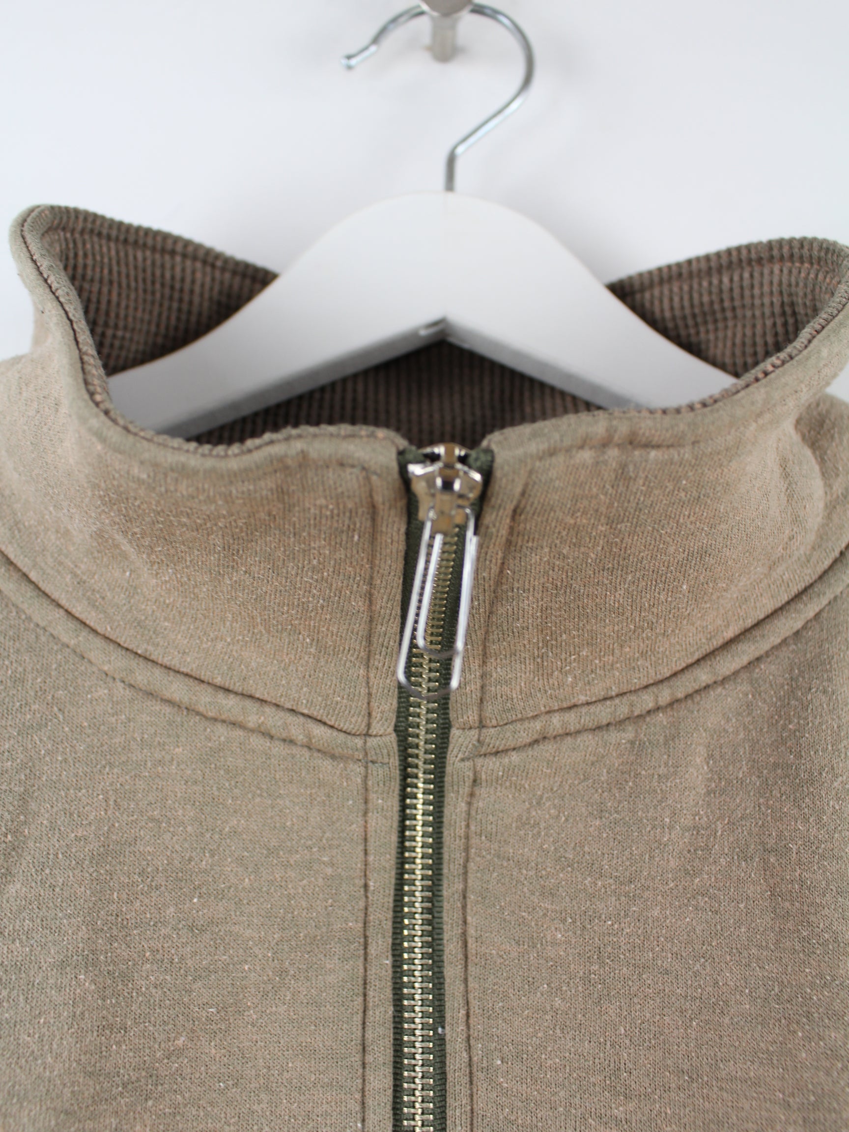 Sweater von Pooh mit gesticktem Logo und kurzem Reißverschluß in Größe XL aus den 90'ern. Er ist aus einer Baumwollmischung angefertigt und in Braun bei uns vorrätig.