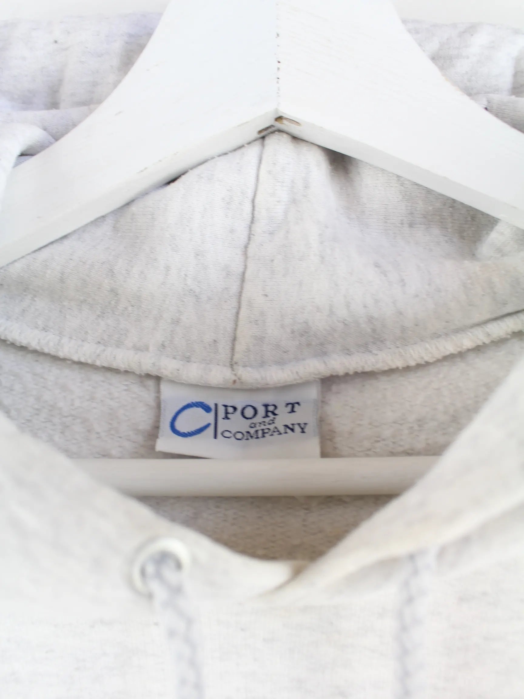 Grauer Hoodie der Brand Port & Company aus den 90'ern in Größe XXL. Er ist aus einer Baumwollmischung gefertigt und in gutem Zustand im Angebot. Mit seltenem Mountain Print.
