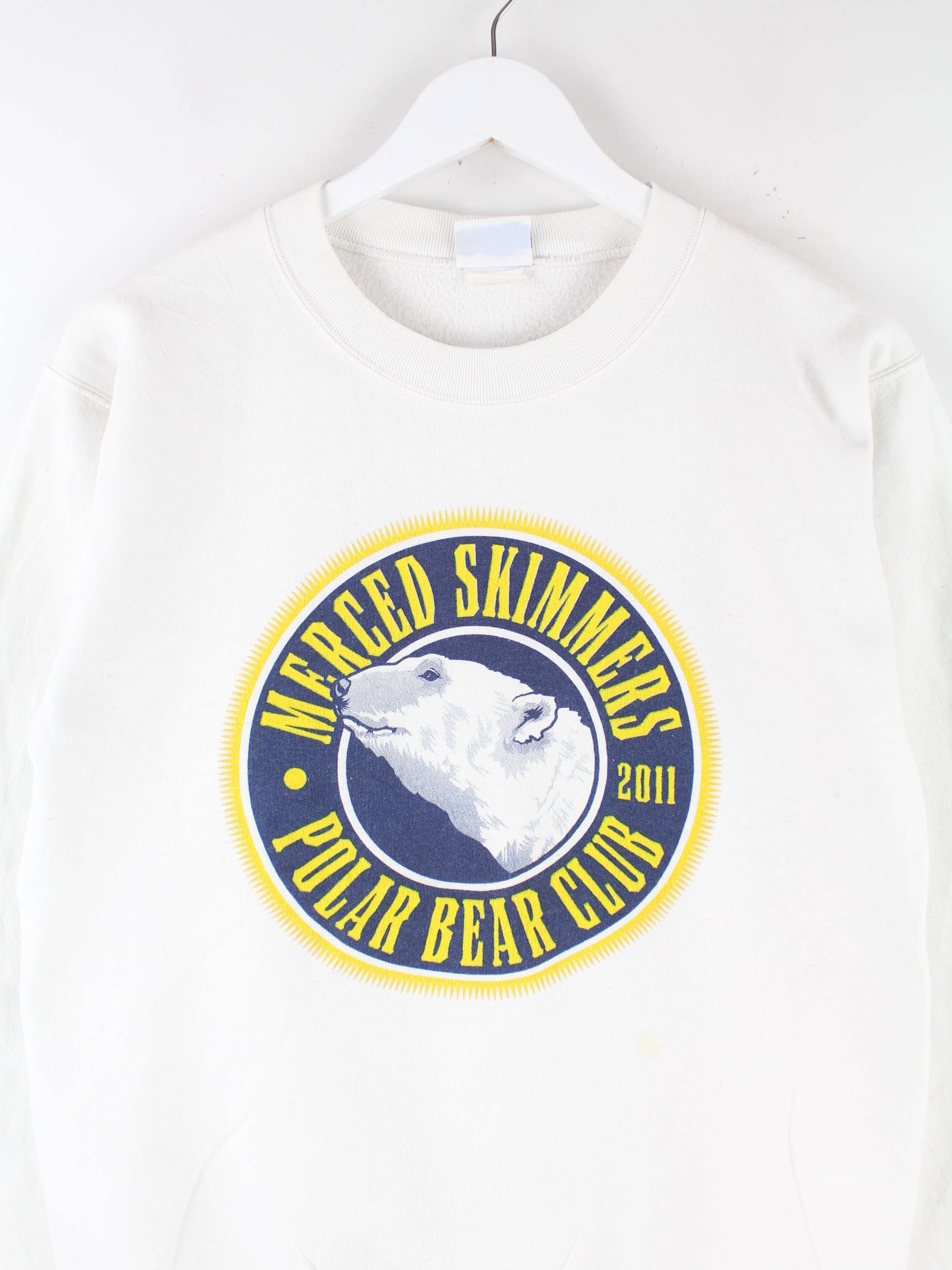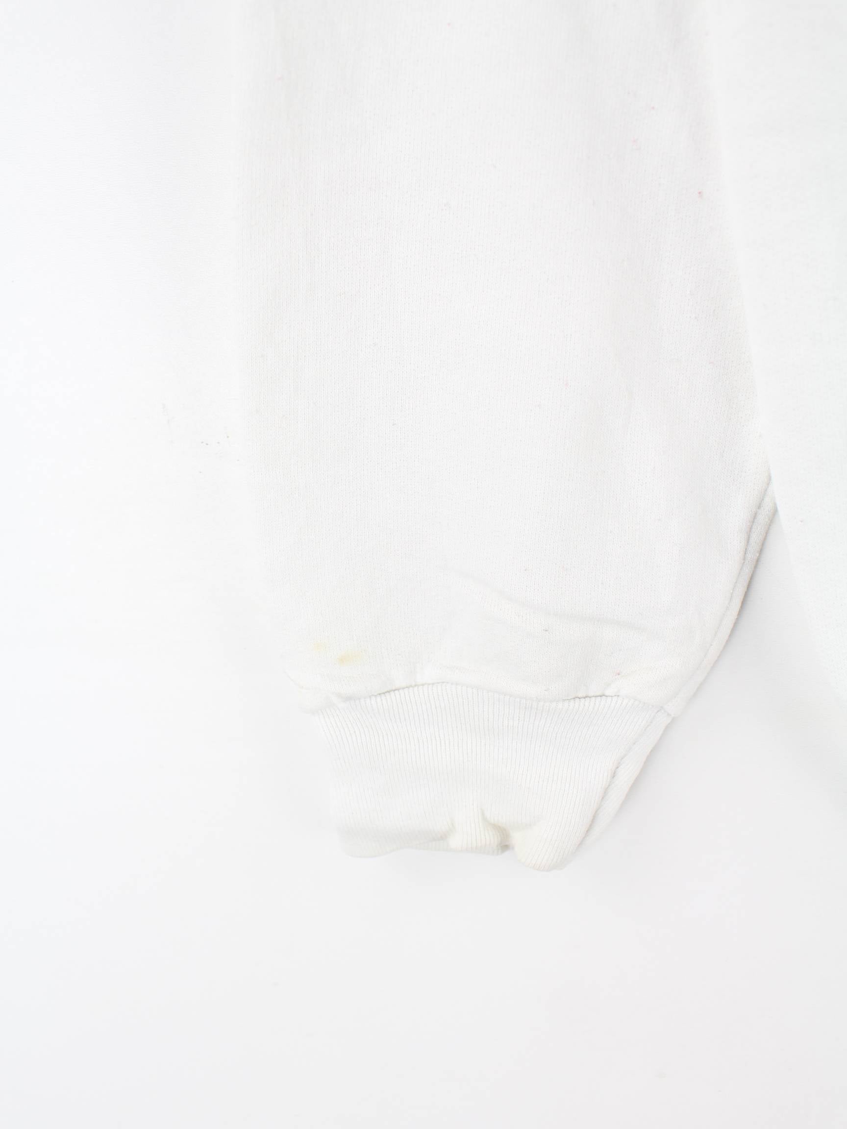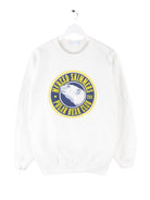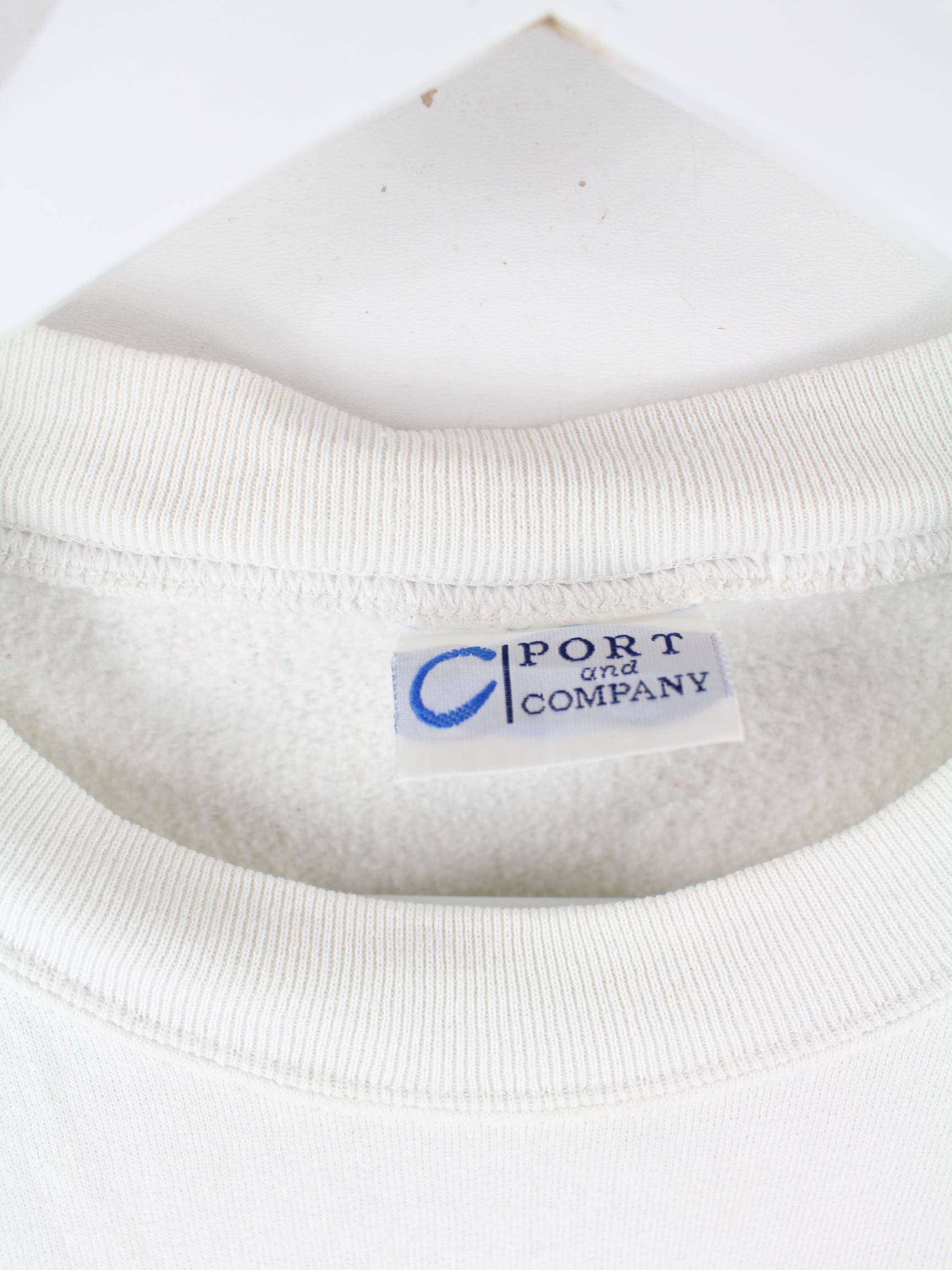 Sweater der Brand Port & Company in Größe M aus den 90'ern. Er ist aus einer Baumwollmischung angefertigt und in Weiß bei uns vorrätig. Mit tollem Club Print.