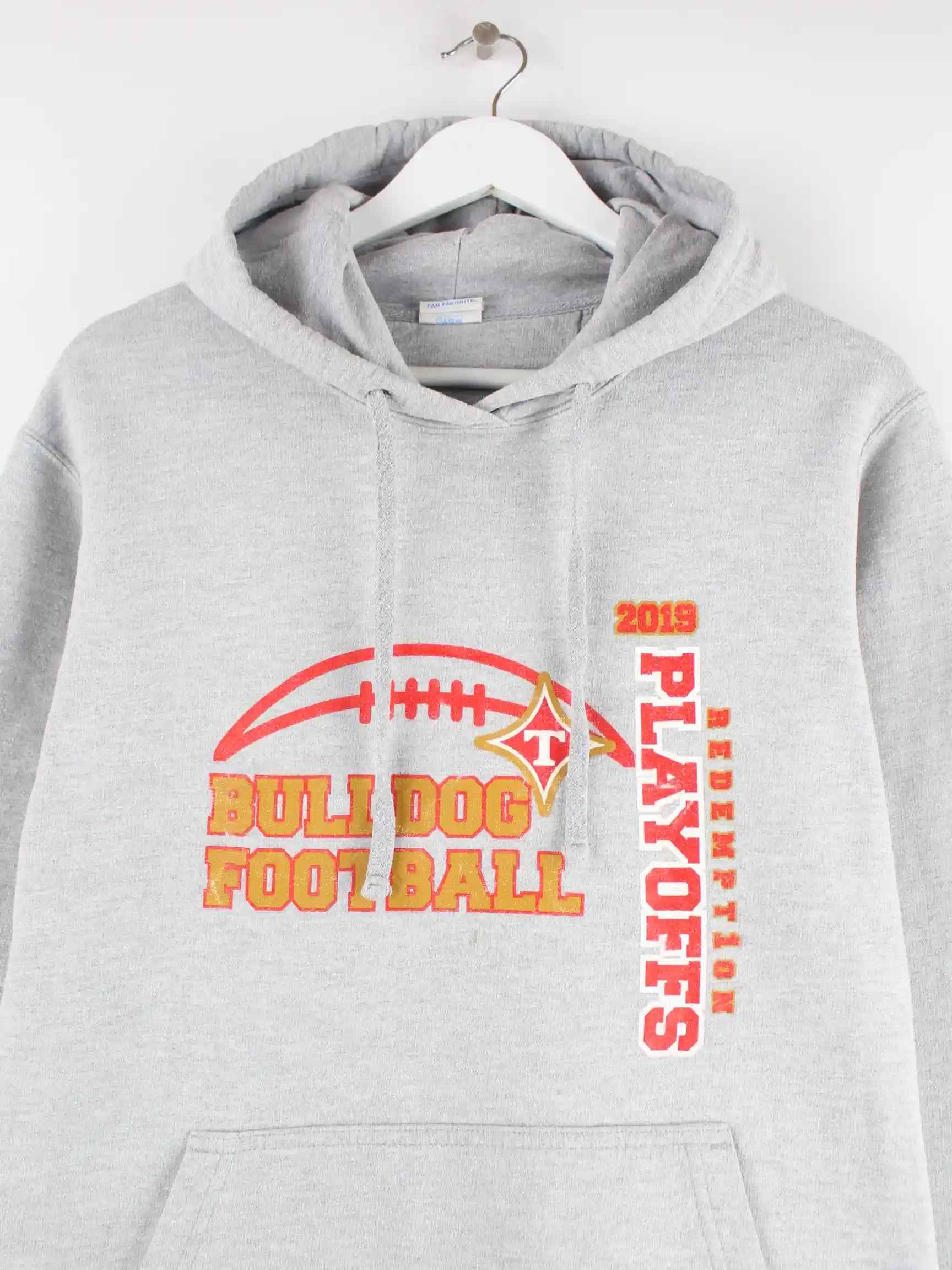 Hoodie von Port & Company in Größe M. Er ist aus einer Baumwollmischung und in Grau lieferbar. Mit schickem Football Print.