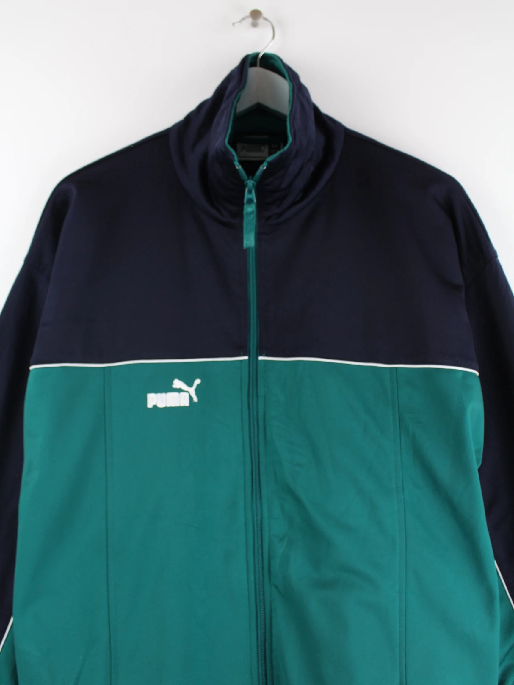 Trainingsjacke des Labels Puma in Größe XL. Sie ist aus Synthetik produziert und in Grün in Stock.