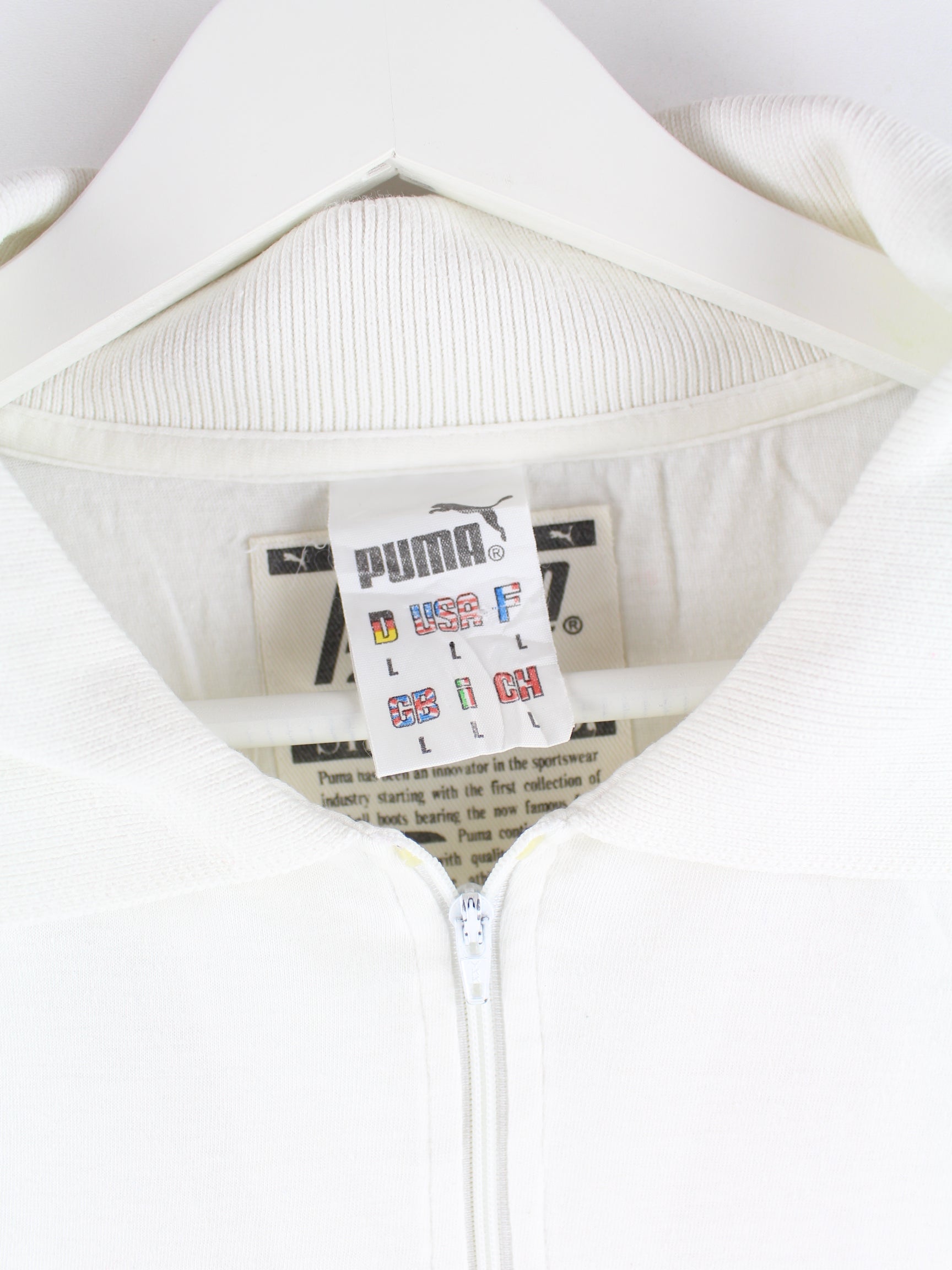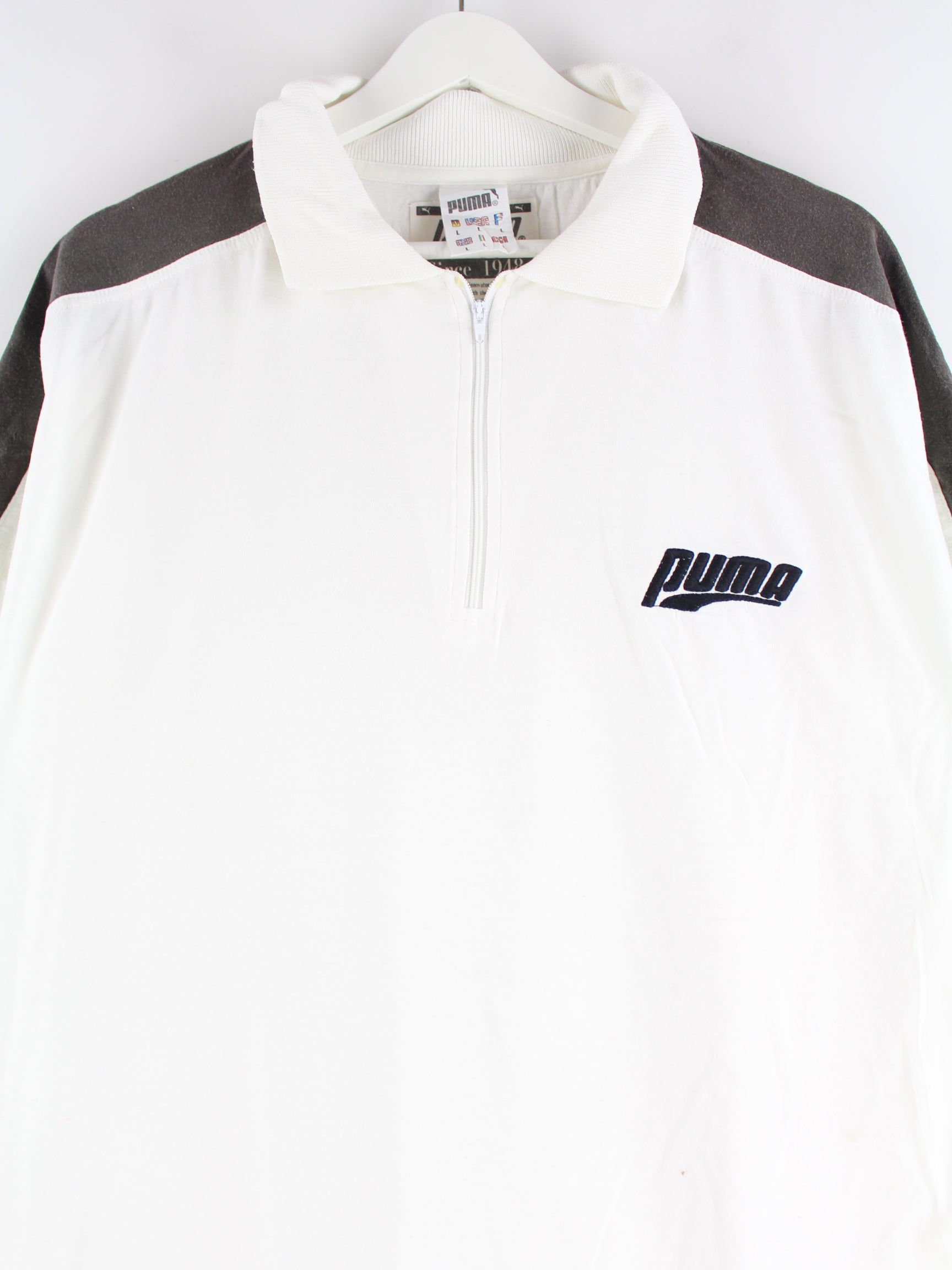 Polo shirt from the brand Puma with embroidered logo in size L from the 90's. It is made of cotton and available in white.