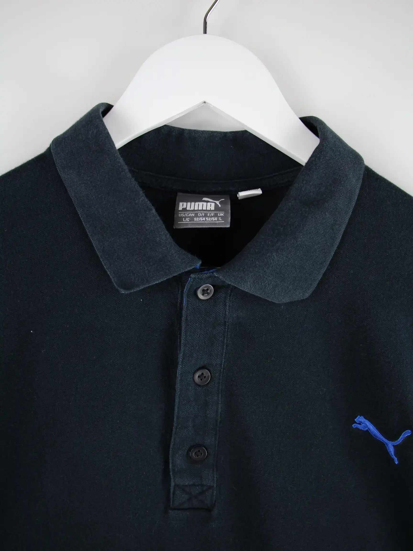 Schwarzes Poloshirt des Labels Puma in Größe L. Es ist aus Baumwolle und in gutem Zustand vorrätig.