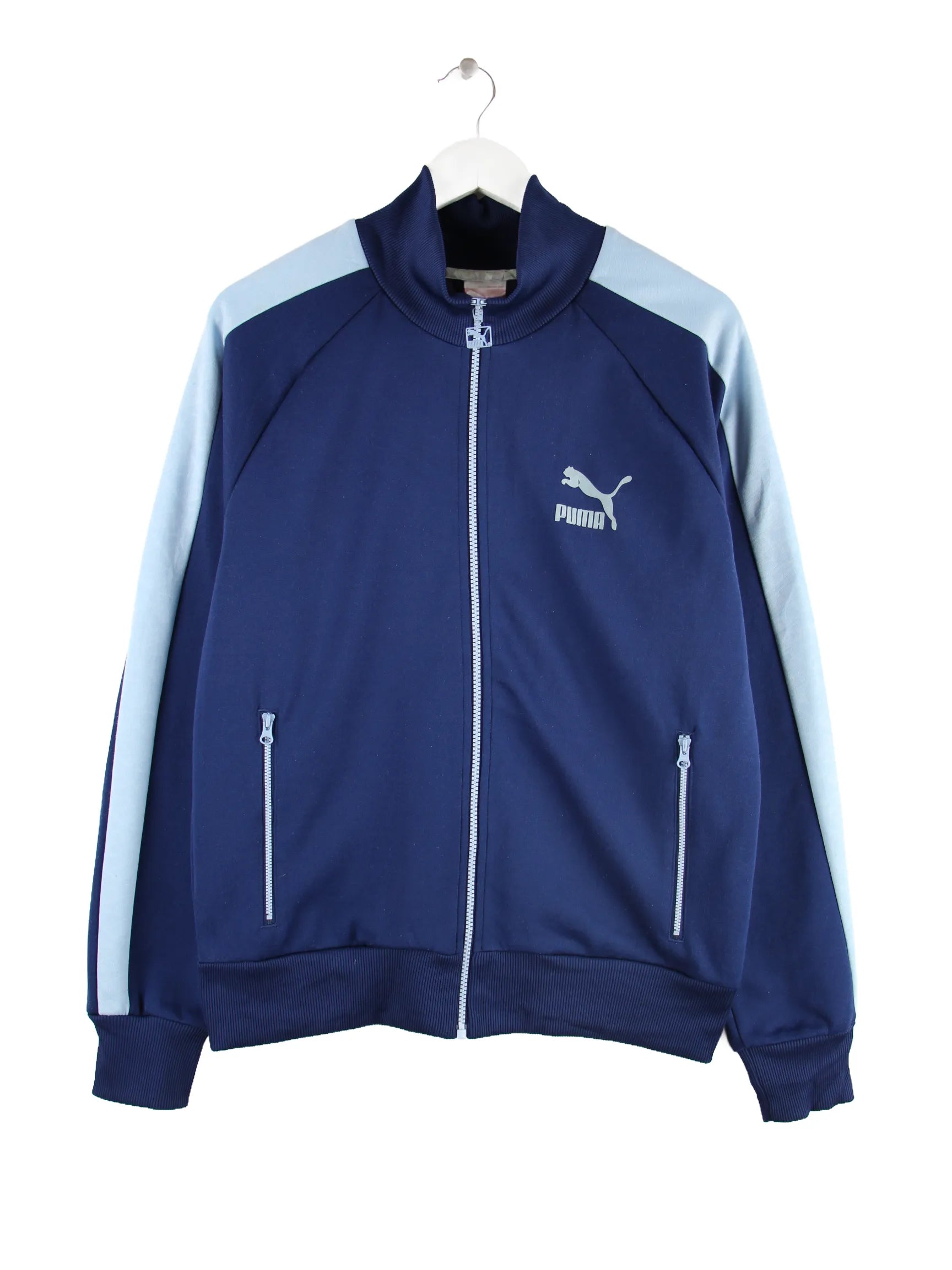 Trainingsjacke der Brand Puma in Größe M. Sie ist aus Synthetik hergestellt und in Blau im Bestand.