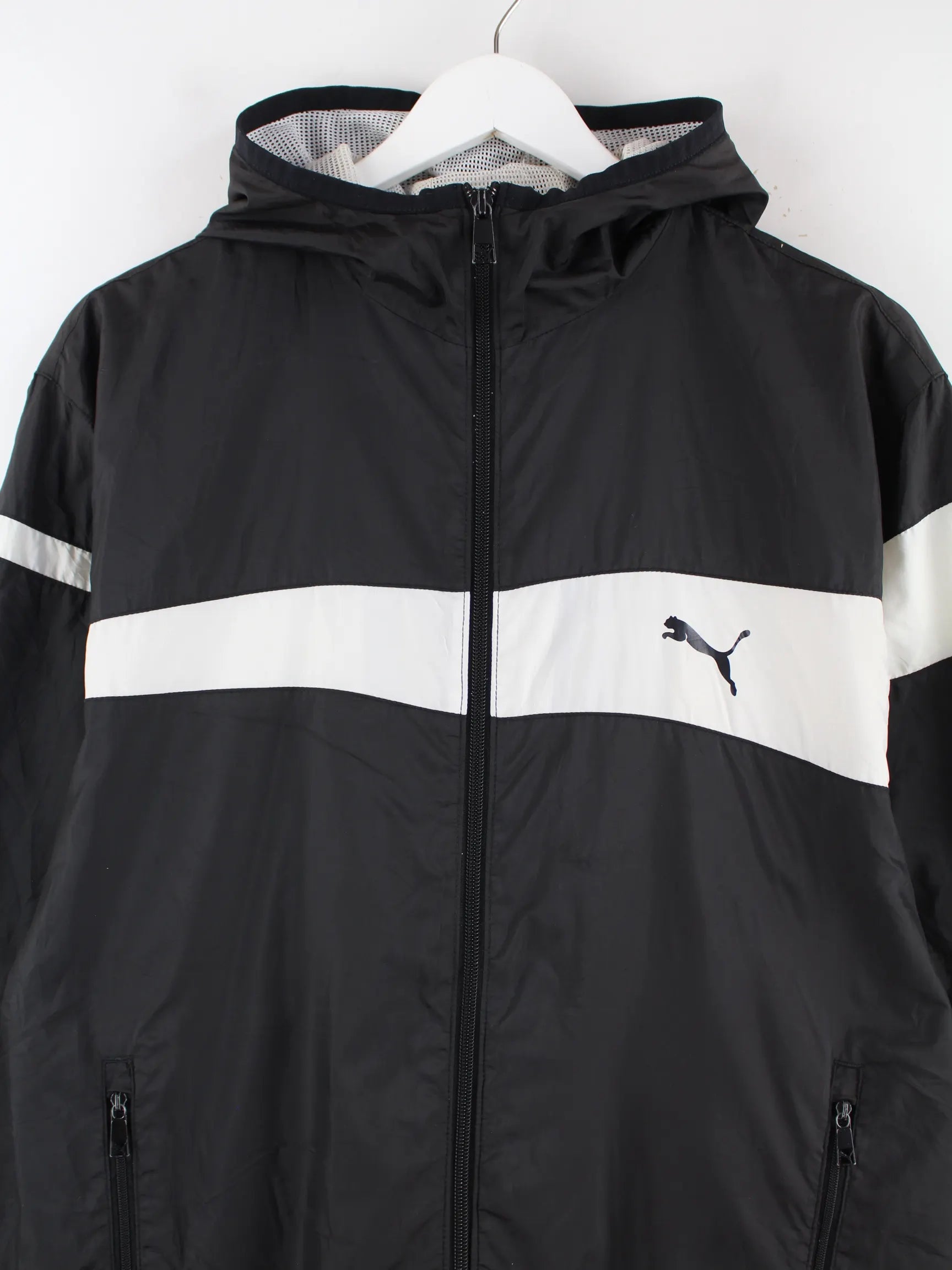 Windbreaker vom Label Puma in Größe M. Er ist aus Synthetik und in Schwarz in Stock.