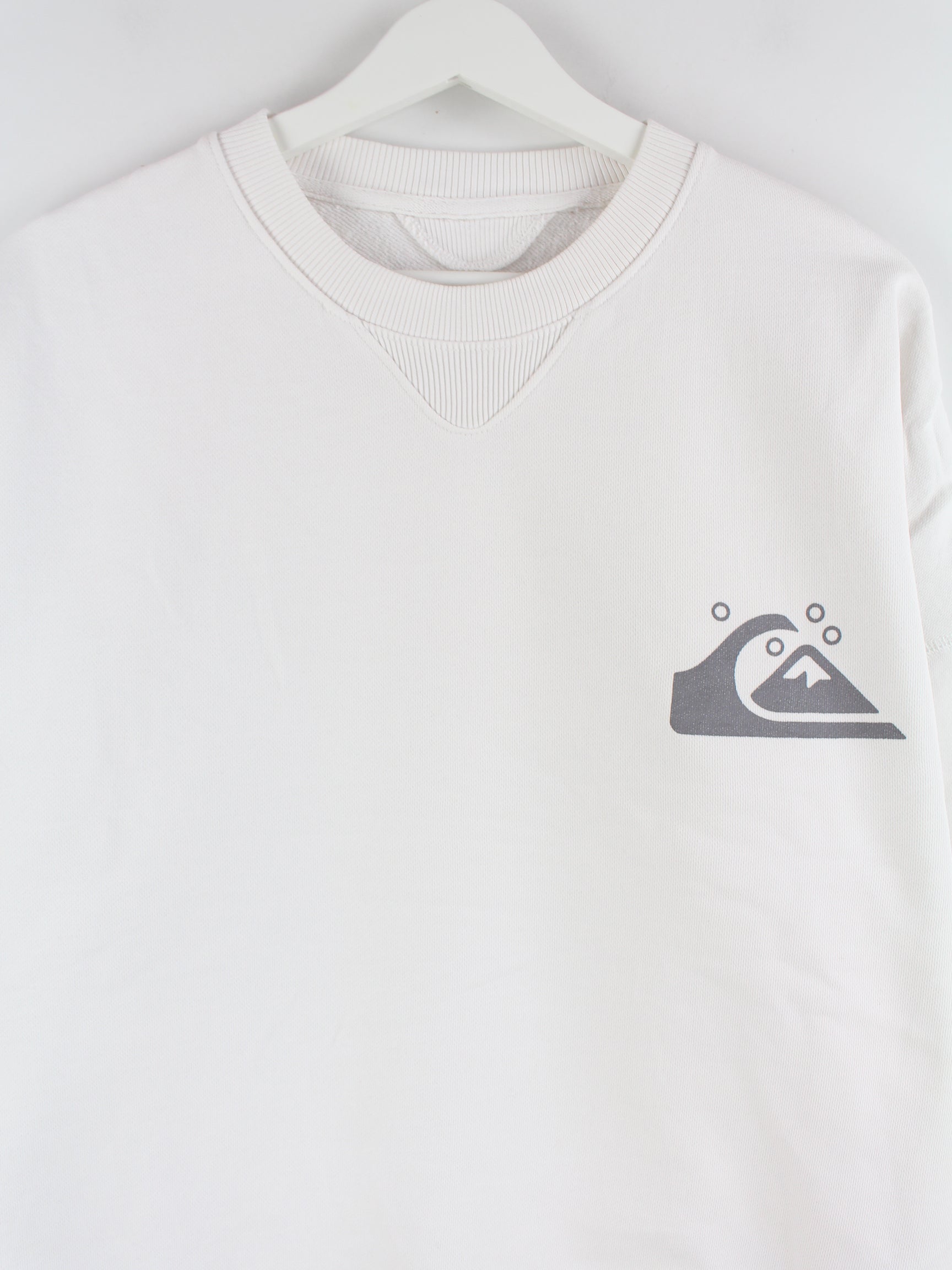 White sweater from the Quiksilver label from the early 2000s in size S. It is made from a cotton blend and is available in good condition. With a chic y2k print.