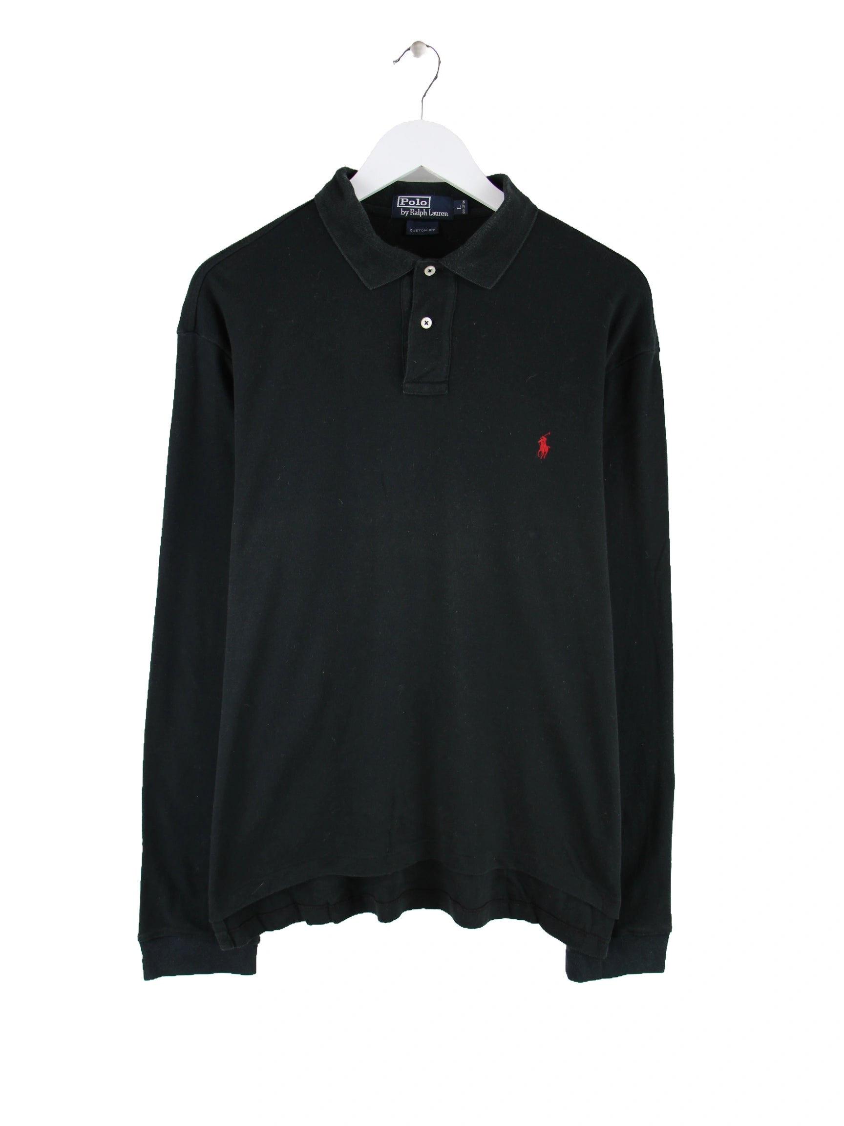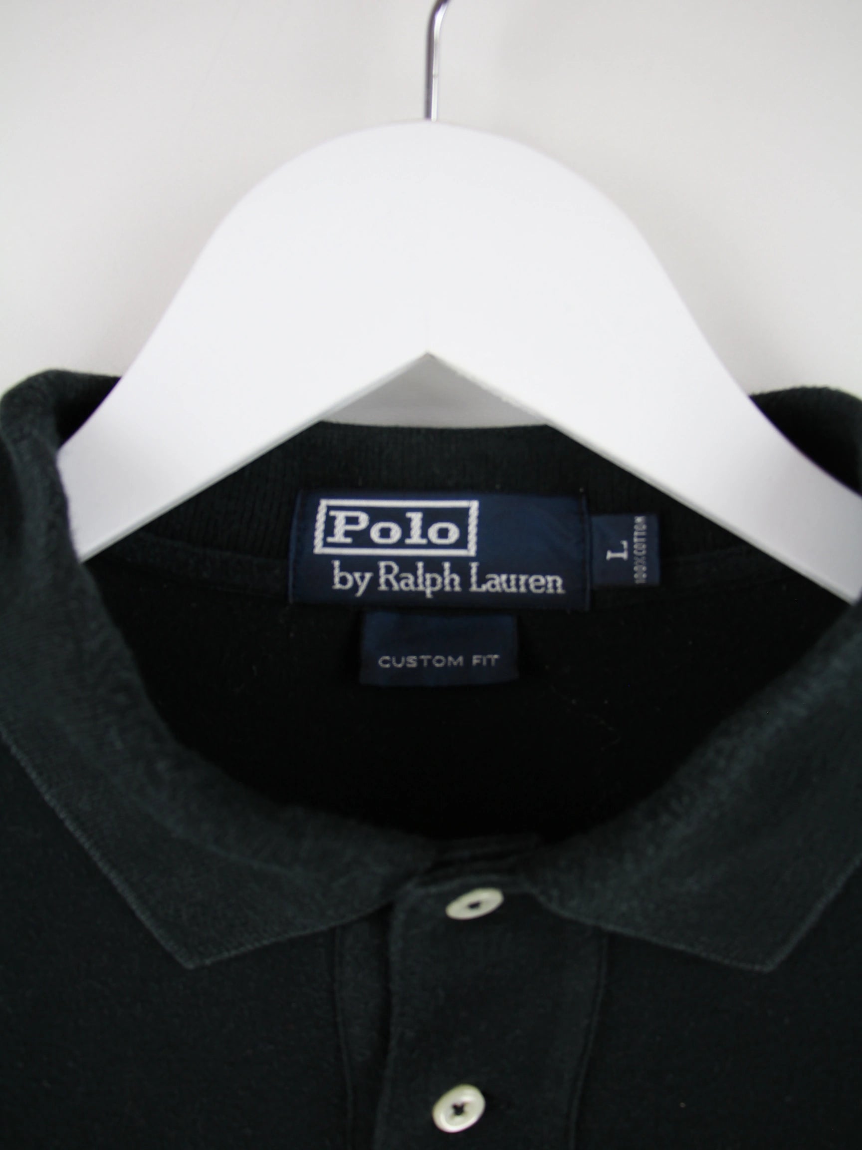 Ralph Lauren 00s Custom Fit Langarm Polo Schwarz L