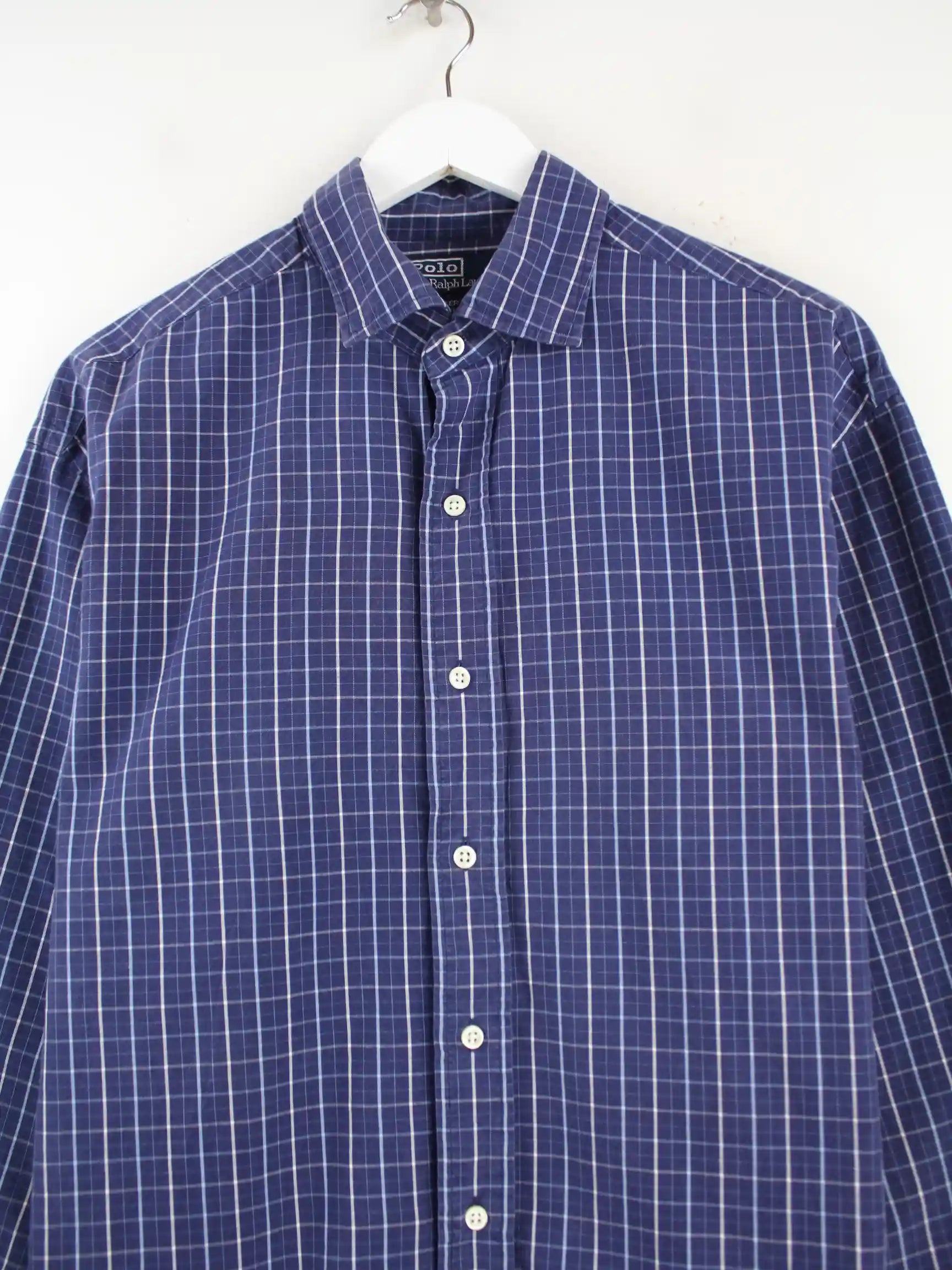 Blaues Hemd vom Label Ralph Lauren in Größe L. Es ist aus Baumwolle produziert und in sehr gutem Zustand bei uns vorrätig.